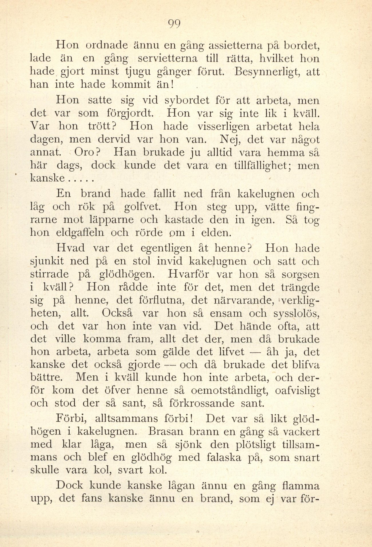 stirrade på glödhögen. Hvarför var hon så sorgsen