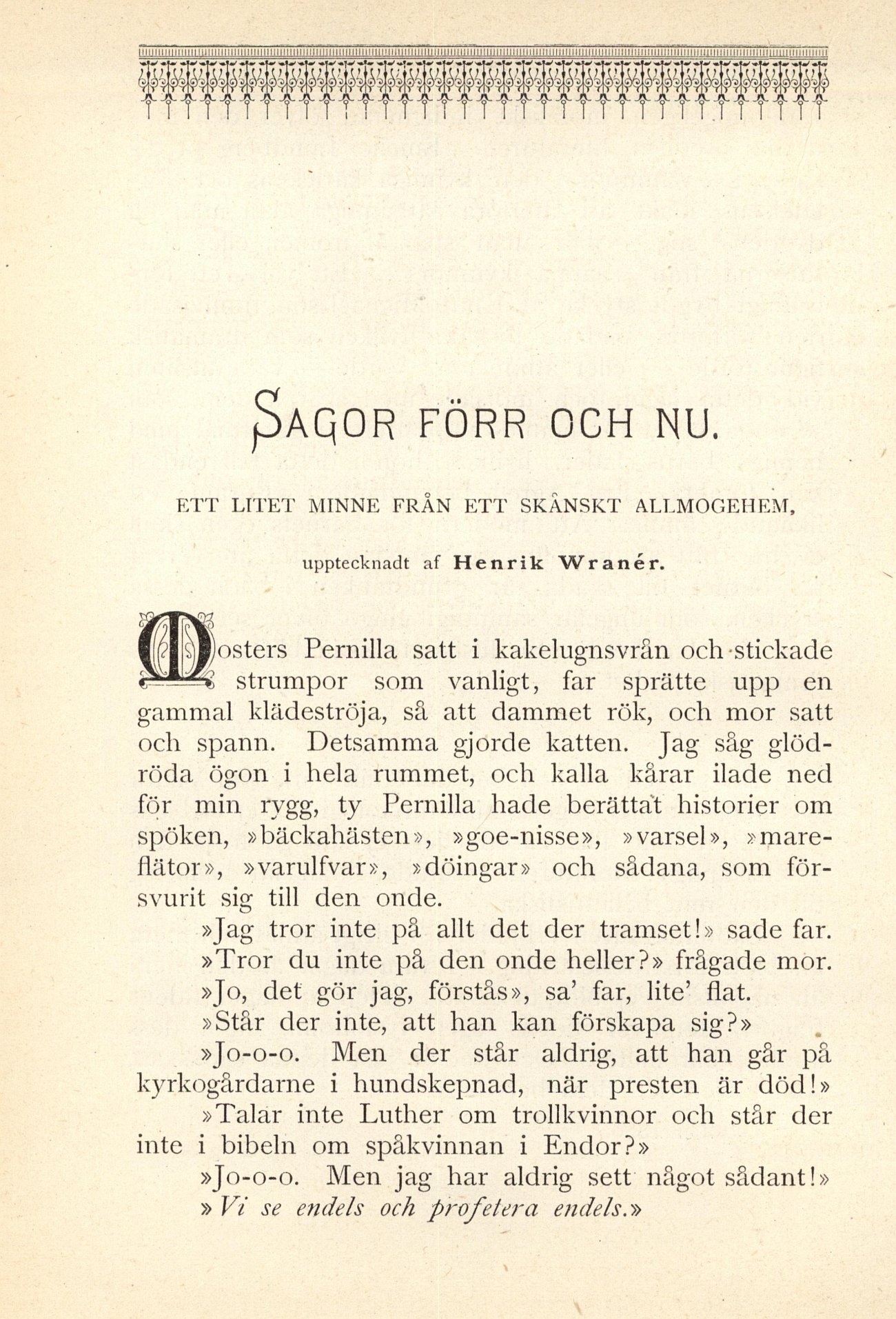 Full resolution (JPEG) - On this page / på denna sida - Sagor förr och nu. Ett litet minne från ett skånskt allmogehem, upptecknadt af Henrik Wranér