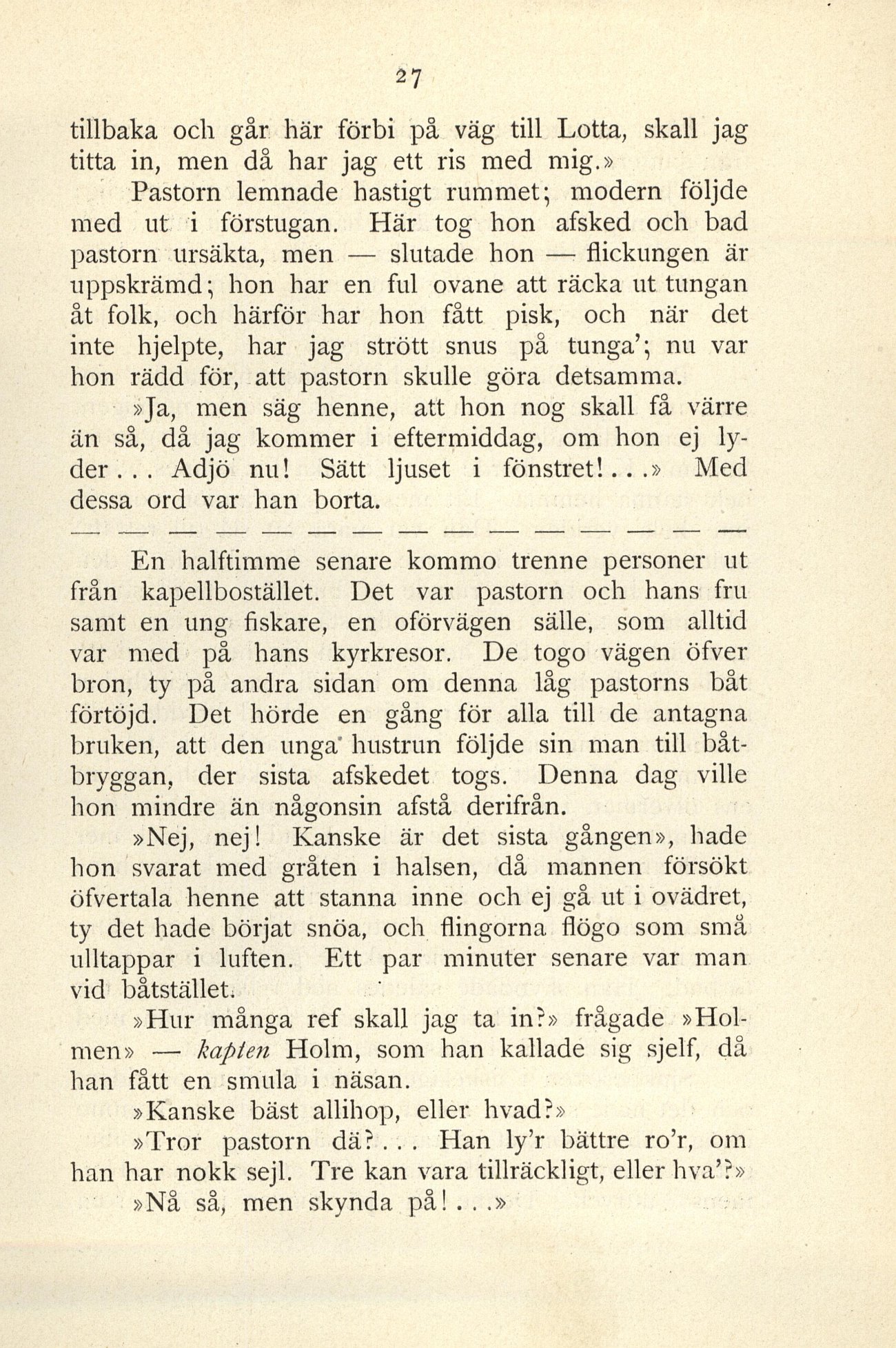 »Tror pastorn dä? . . . Han ly’r bättre ro’r, om