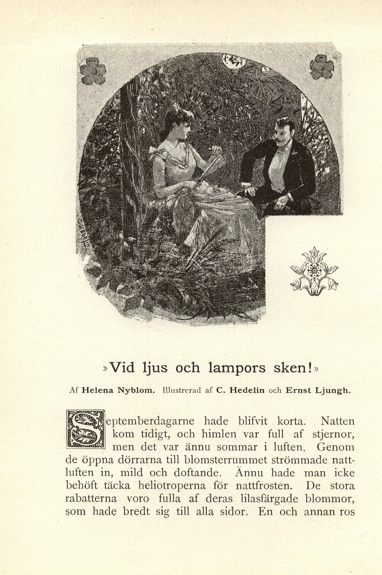 Full resolution (JPEG) - On this page / på denna sida - »Vid ljus och lampors sken!» Af Helena Nyblom. Illustr. af C. Hedelin och Ernst Ljungh