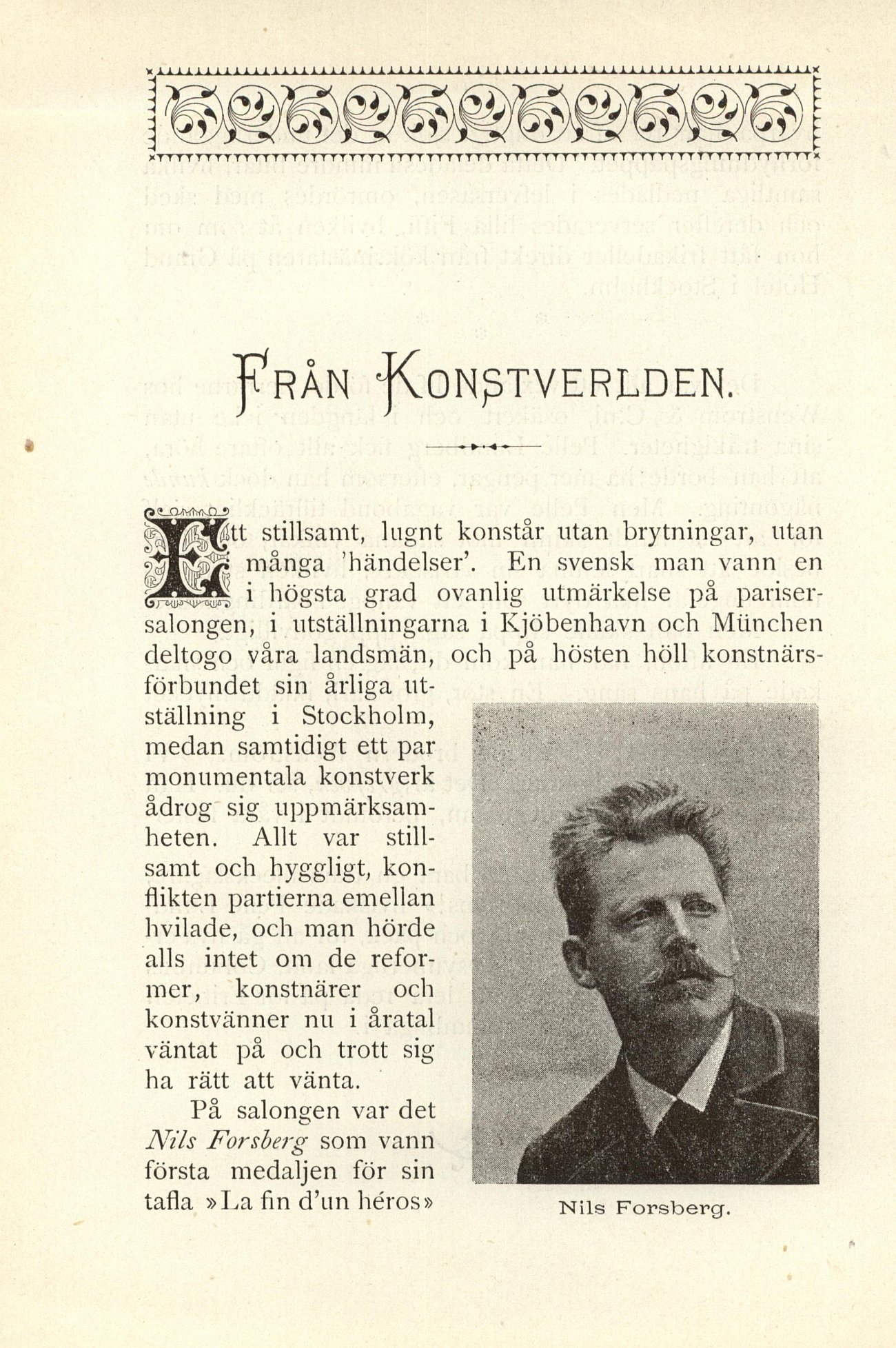 Full resolution (JPEG) - On this page / på denna sida - Från konstverlden. Med porträtt af Nils Forsberg samt afbildningar af hans målningar »Akrobaterna» och »En hjeltes död» samt teckningar af C. Flodman och V. Behm