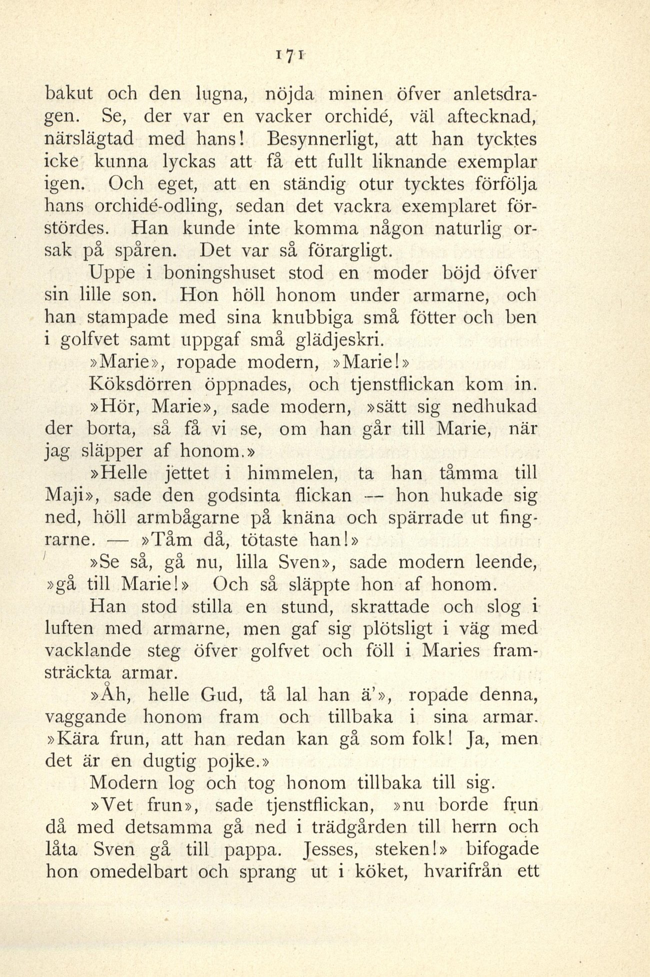 »Se så, gå nu, lilla Sven», sade modern leende,