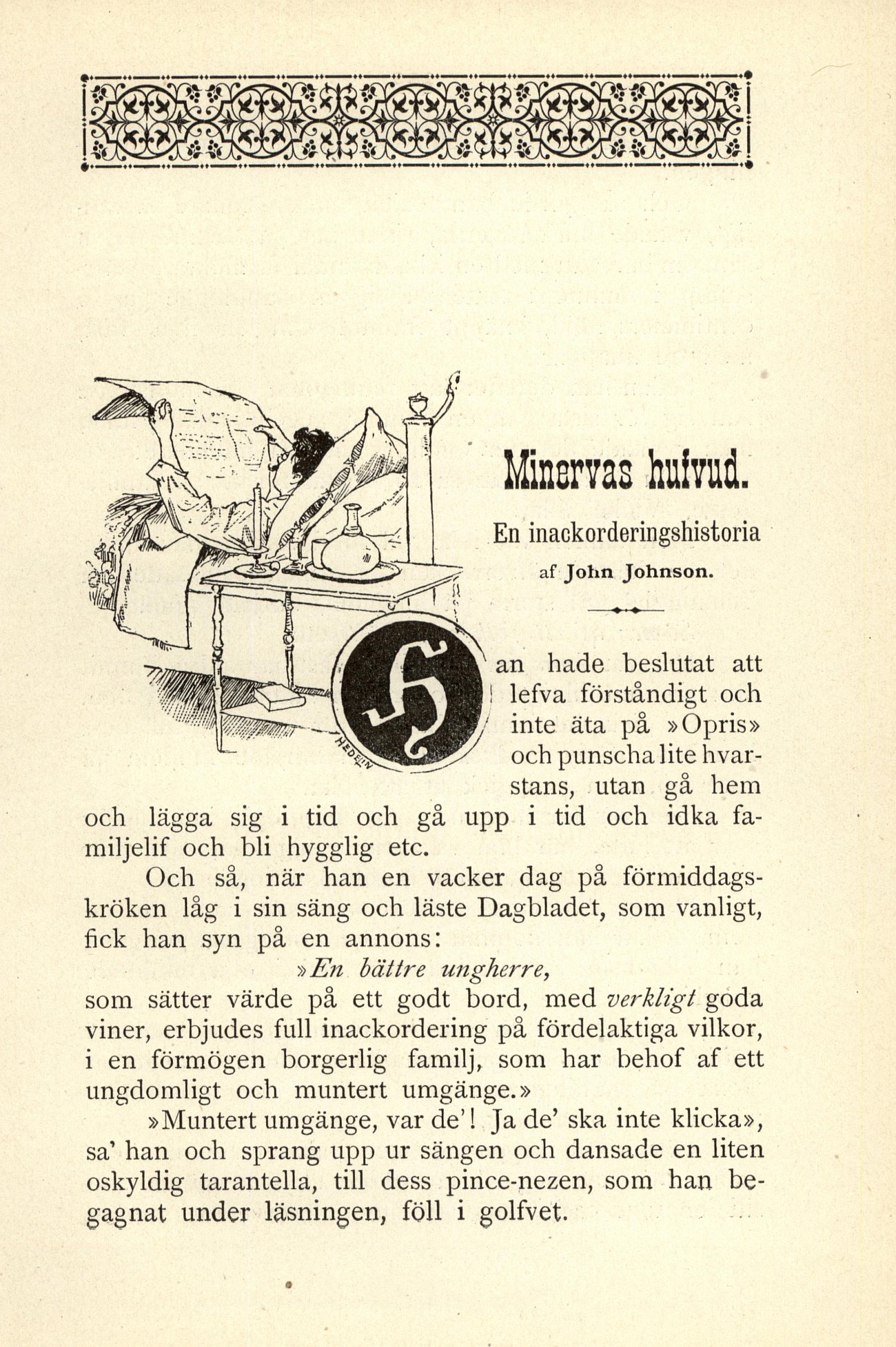 Full resolution (JPEG) - On this page / på denna sida - Minervas hufvud. En inackorderingshistoria af John Johnson. Med 6 teckningar af C. Hedelin