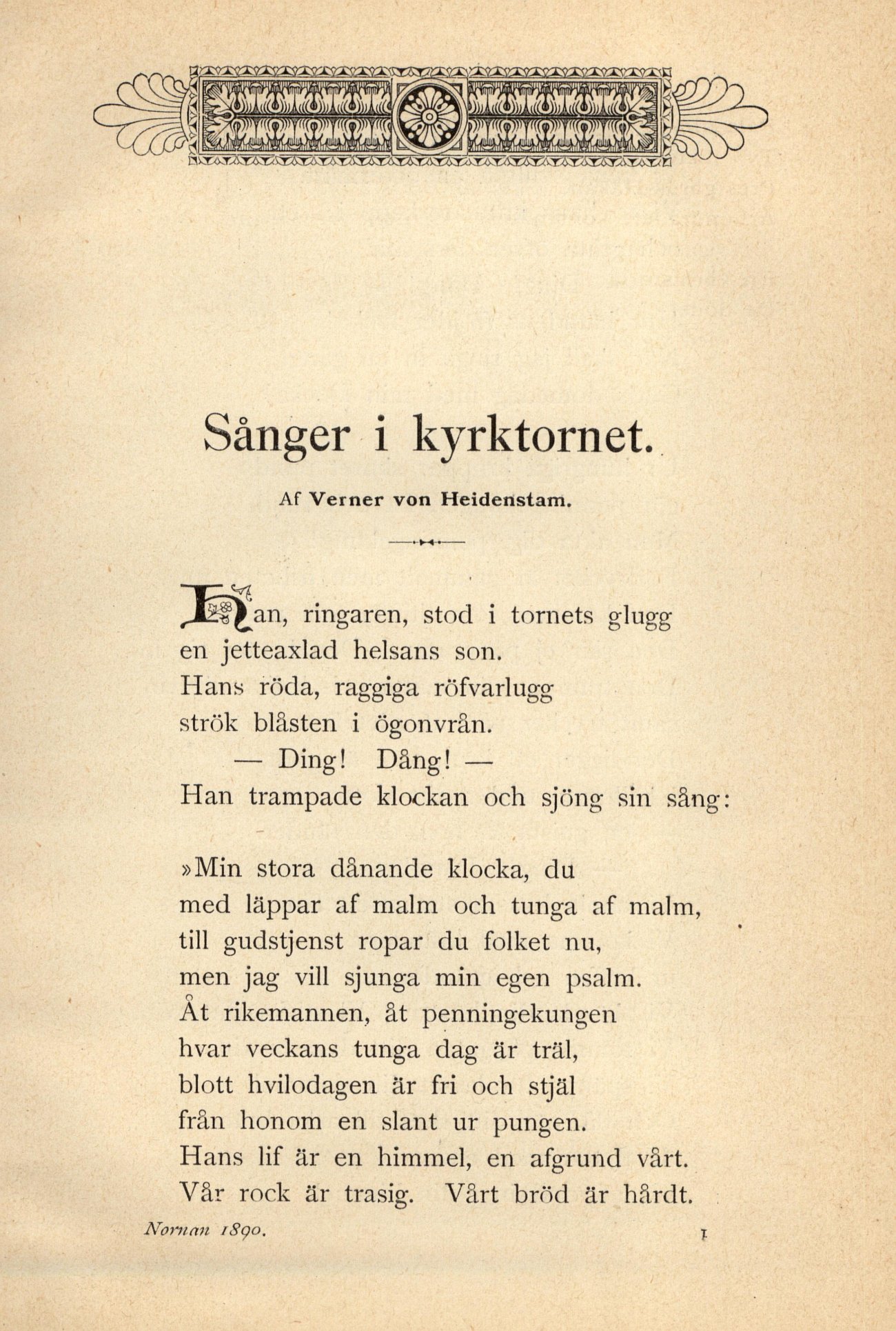- Sånger i kyrktornet. Dikter af Verner von Heidenstam