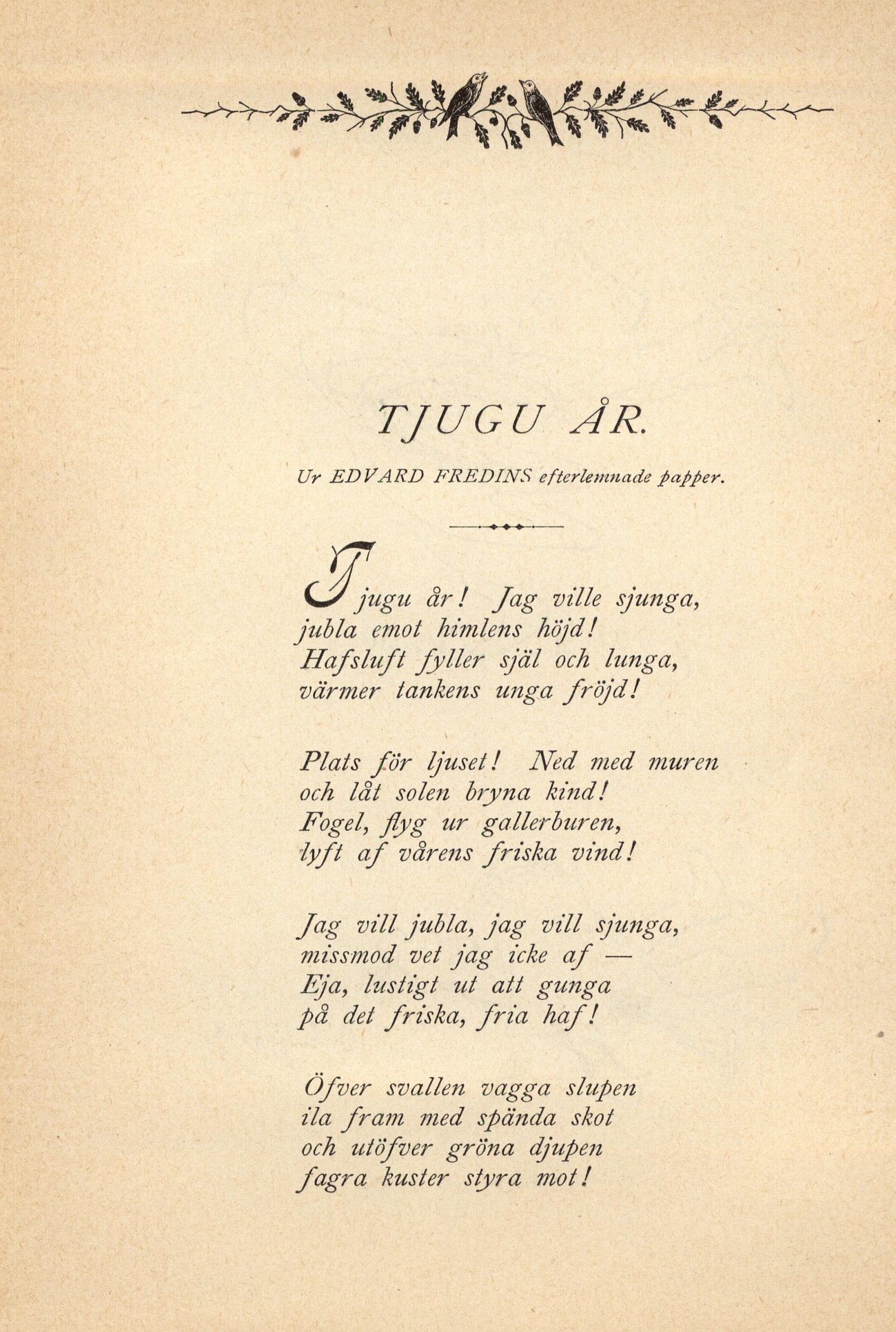 Full resolution (JPEG) - On this page / på denna sida - Tjugu år. Ur Edvard Fredins efterlemnade papper