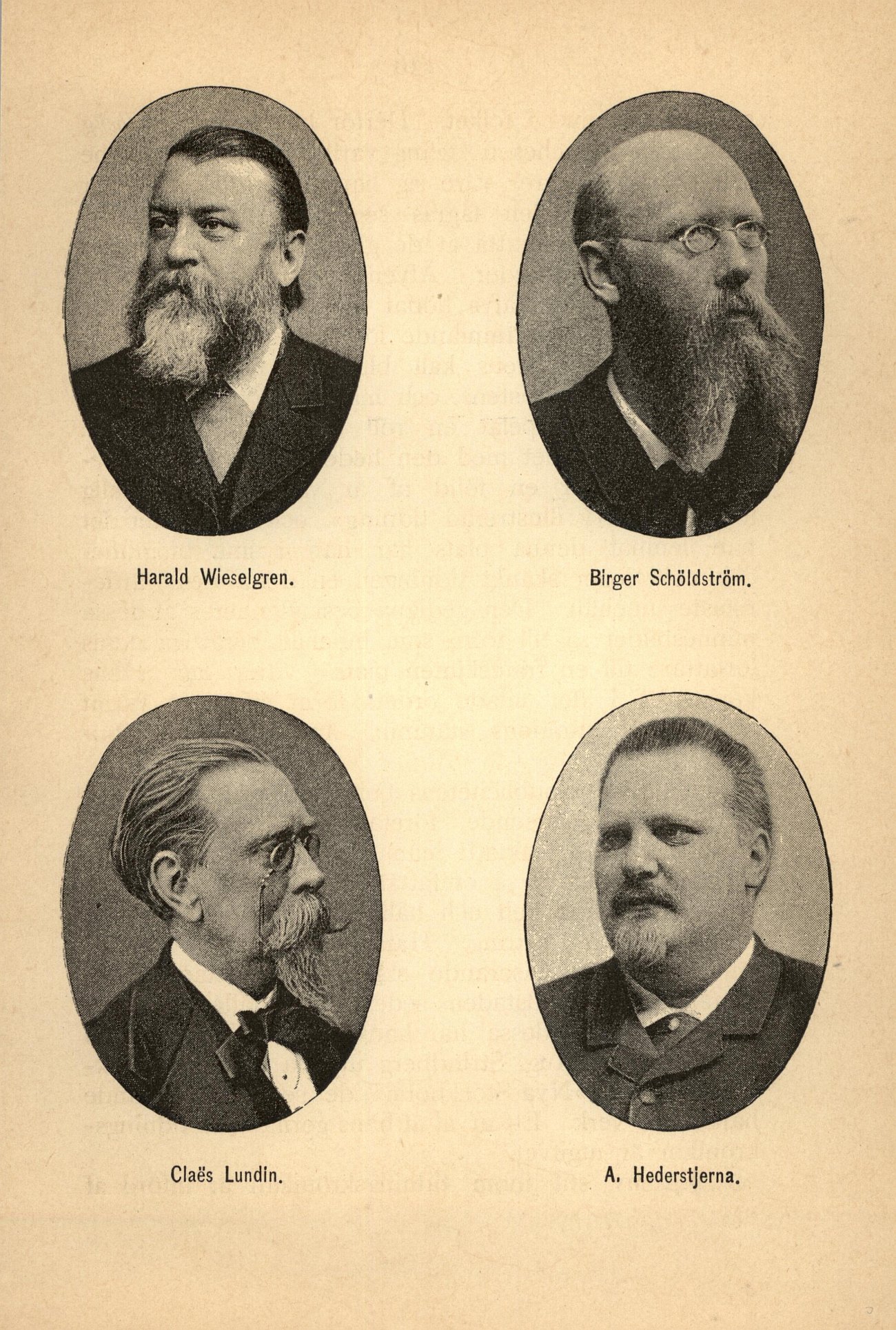 Harald Wieslegren. Birger Schöldström. Claes Lundin. A. Hederstjerna. |
