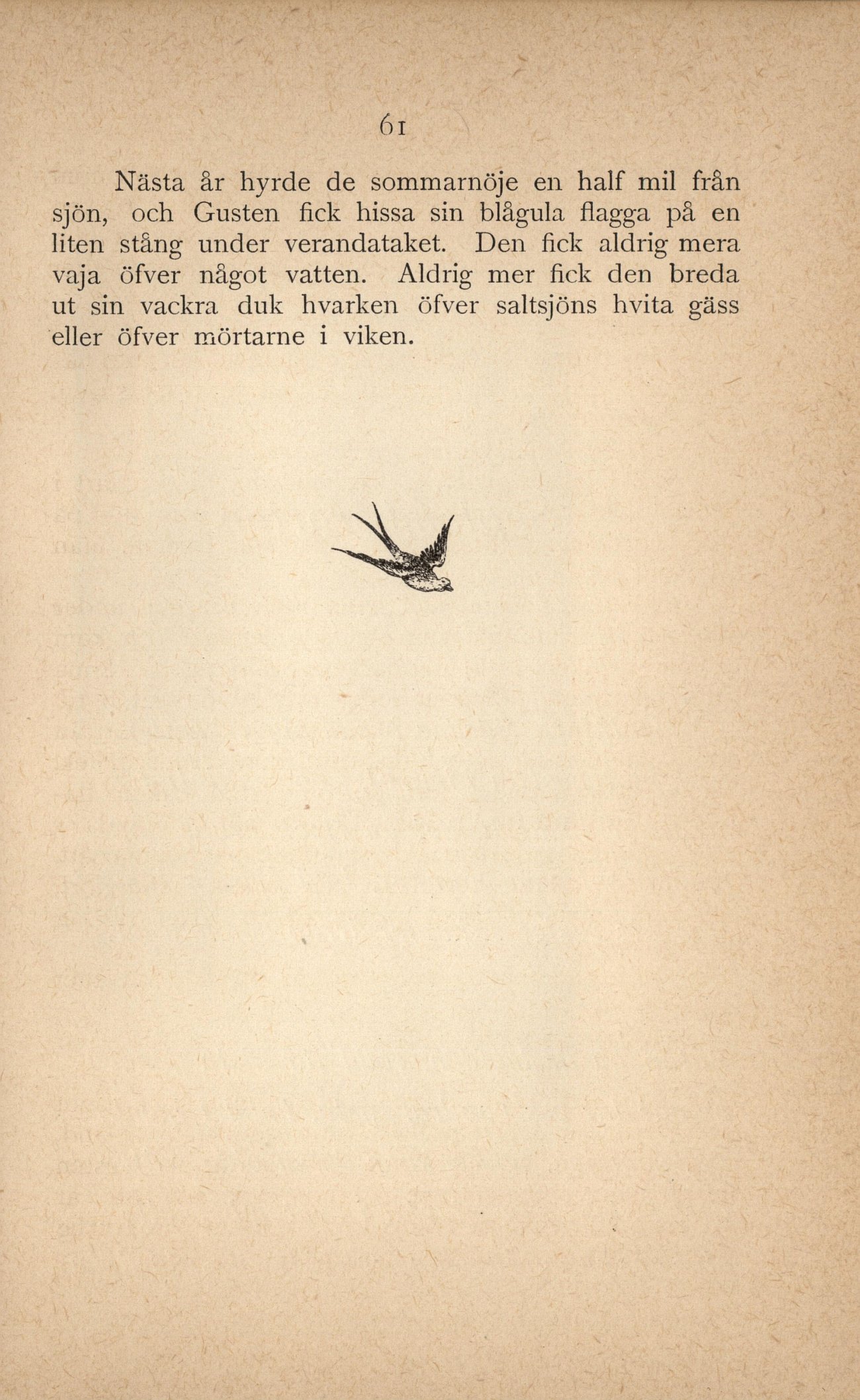ut sin vackra duk hvarken öfver saltsjöns hvita gäss