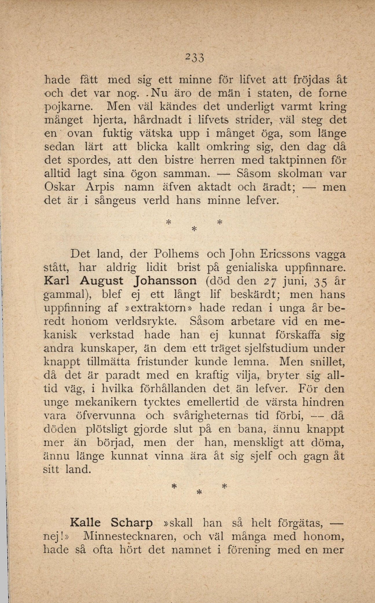 Oskar Arpis namn äfven aktad t och äradt; – men