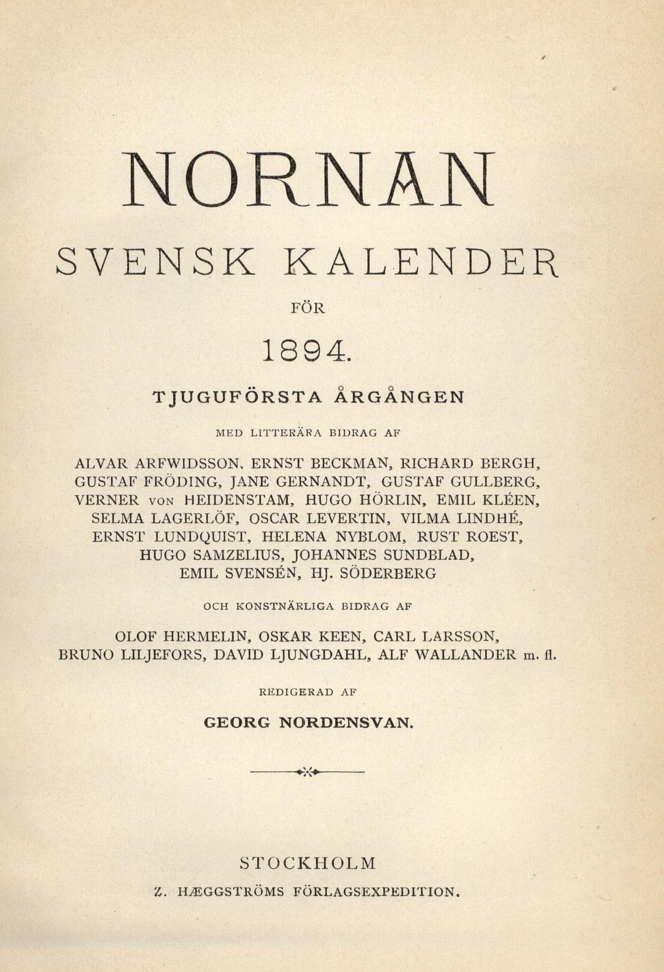 VERNER VON HEIDENSTAM, HUGO HÖRLIN, EMIL KLÉEN,