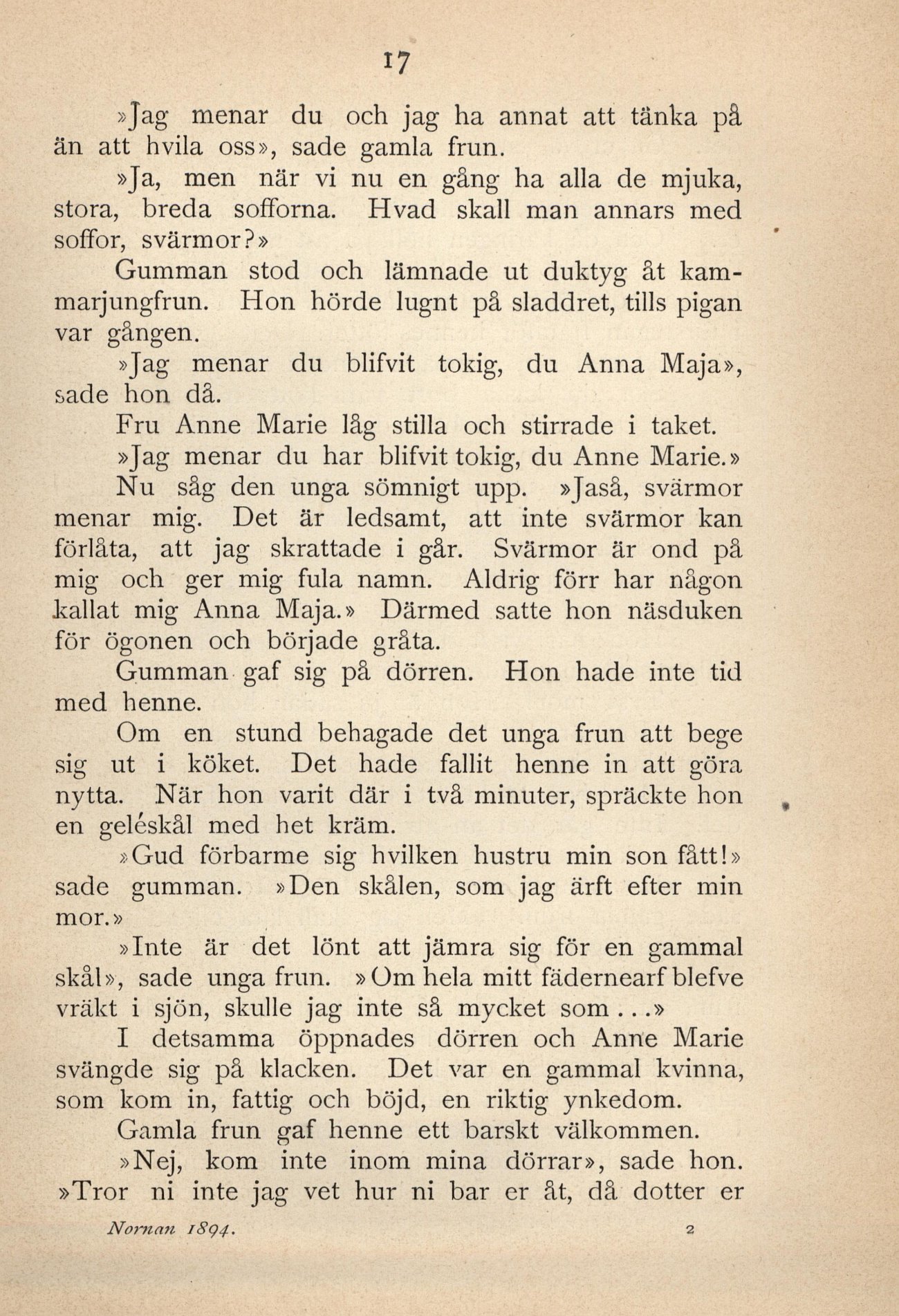 »Jag menar du blifvit tokig, du Anna Maja»,