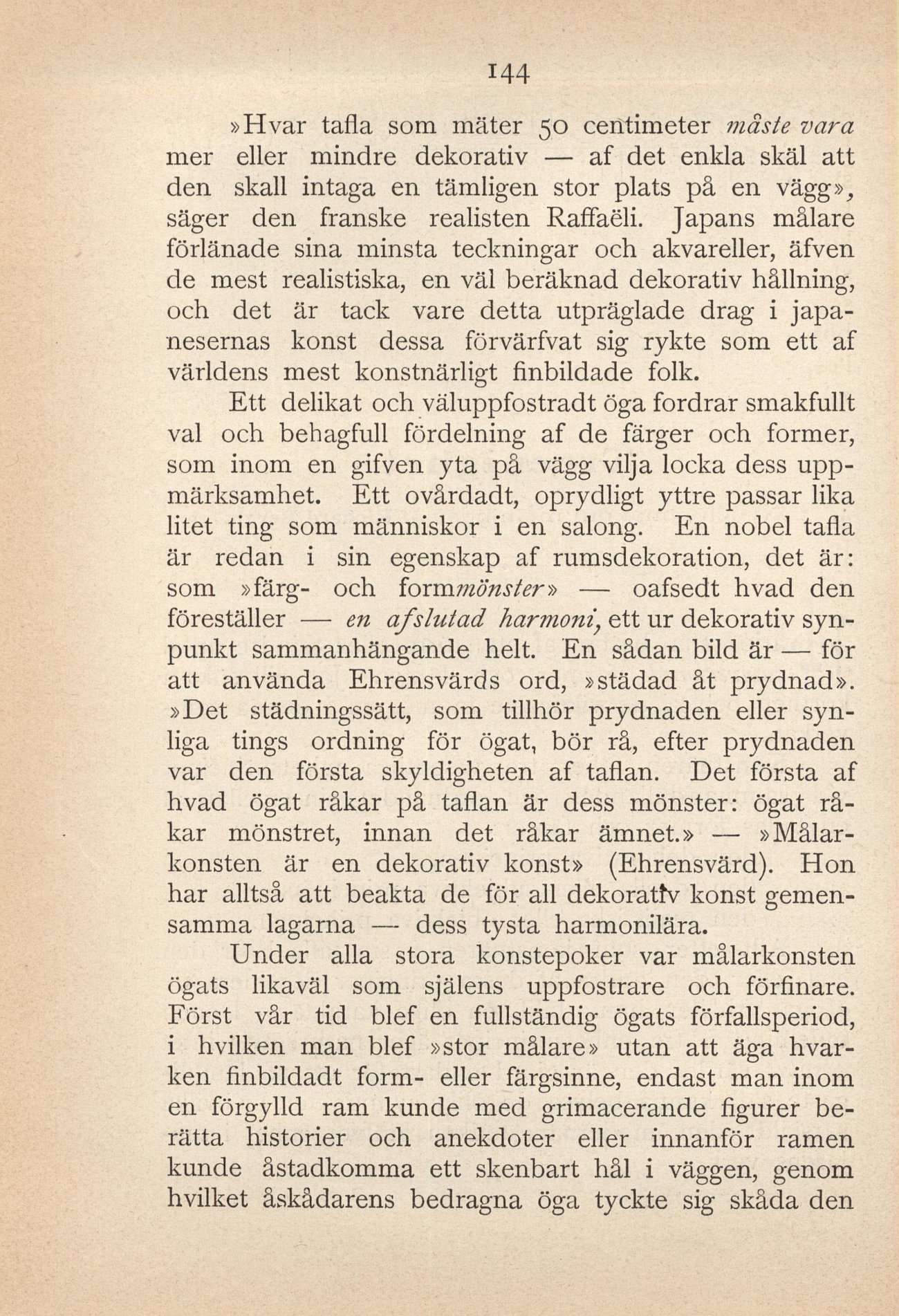 »Målarkonsten är en dekorativ konst» (Ehrensvärd). Hon