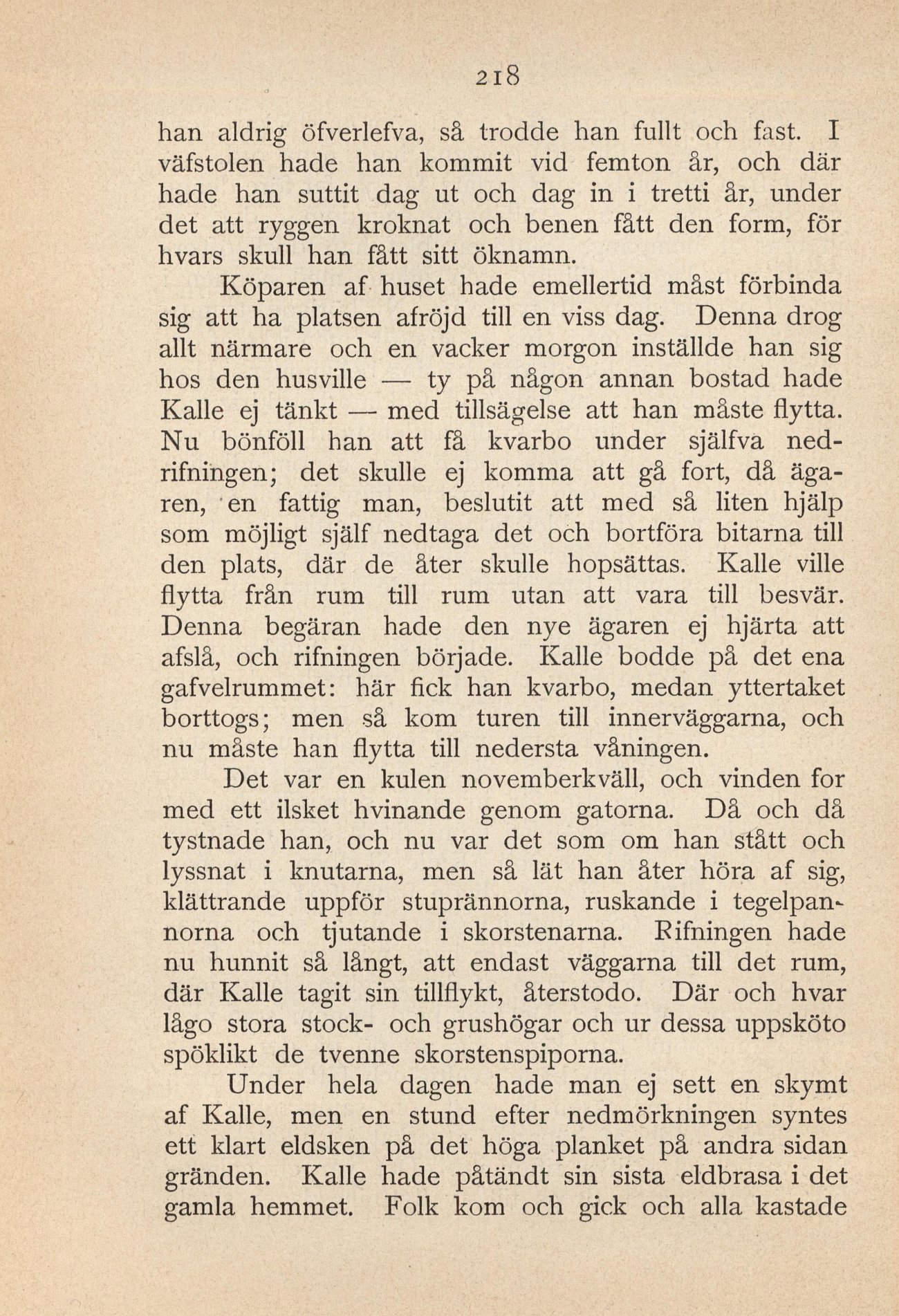 tegelpannorna och tjutande i skorstenarna. Rifningen hade