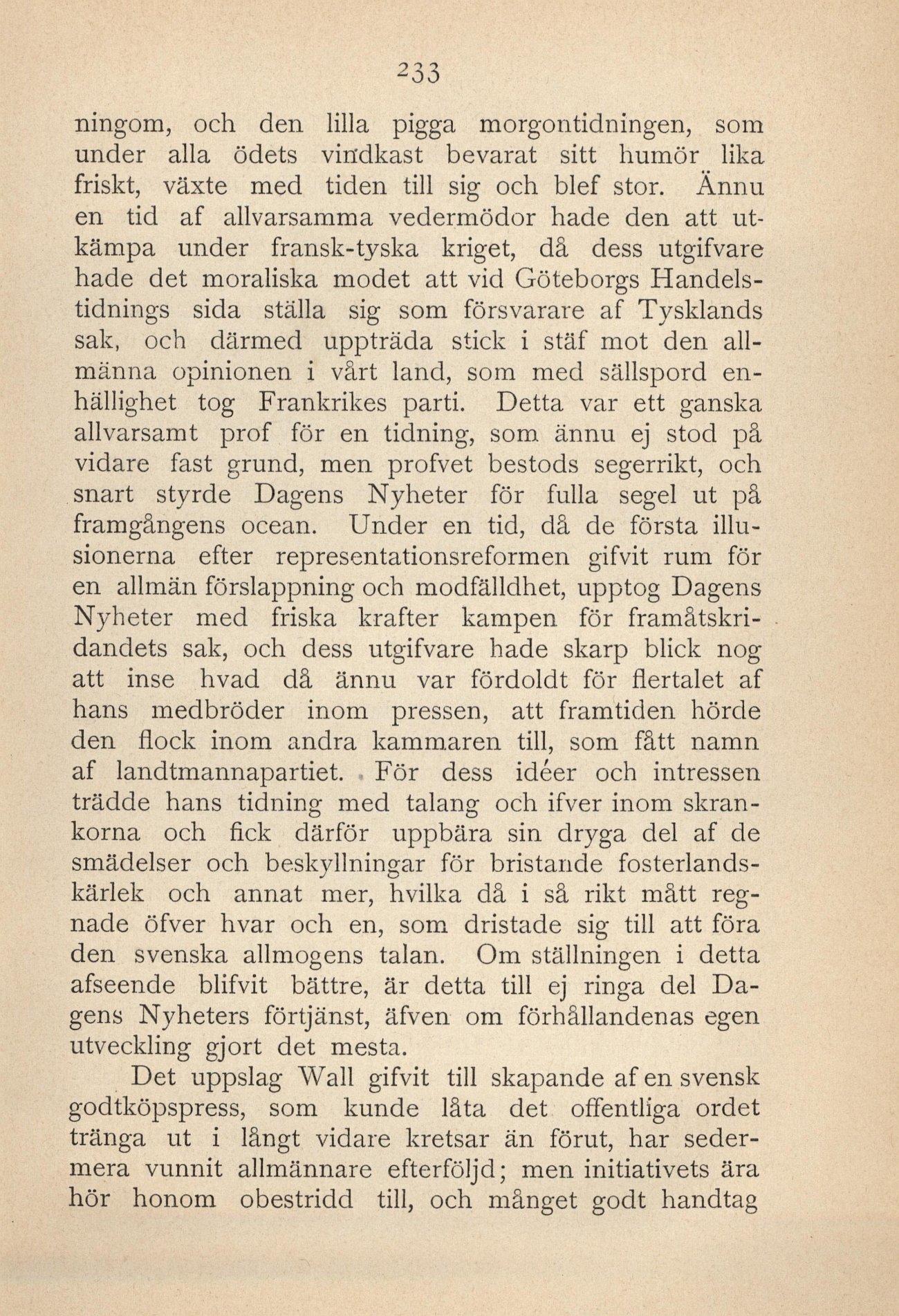 Dagens Nyheters förtjänst, äfven om förhållandenas egen