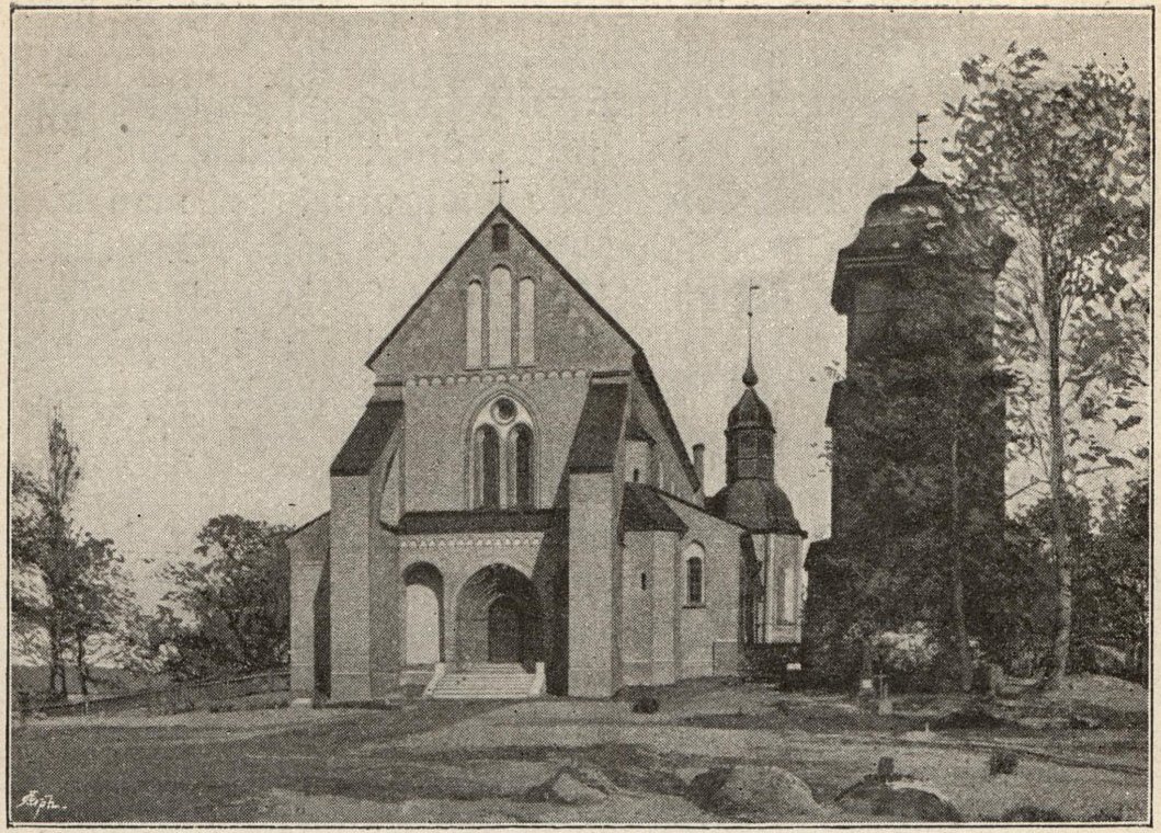 visar sig den ganska ansenliga rundbågskyrkan nu i