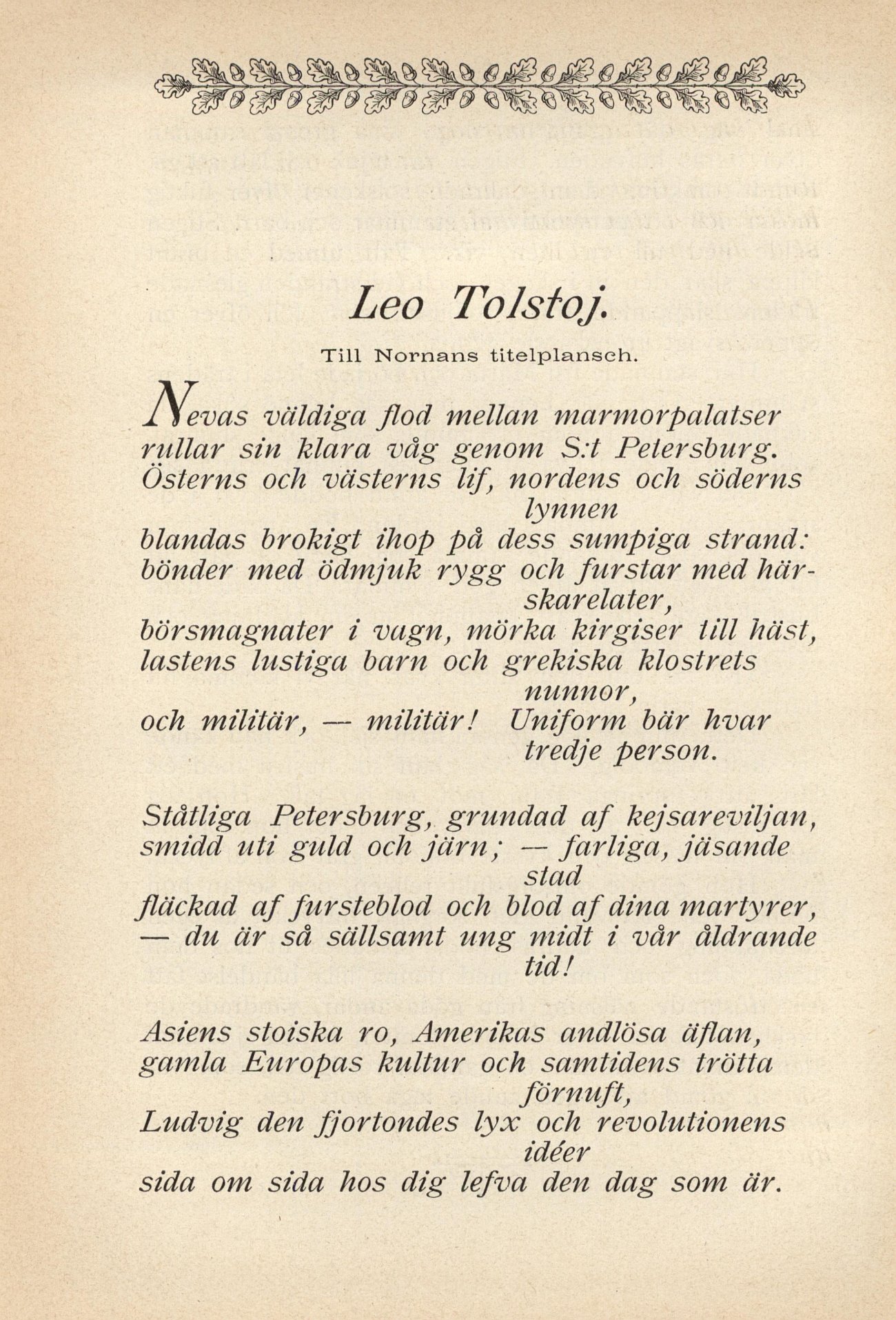 - Leo Tolstoj. Dikt af Arcturus. Med Tolstojs porträtt