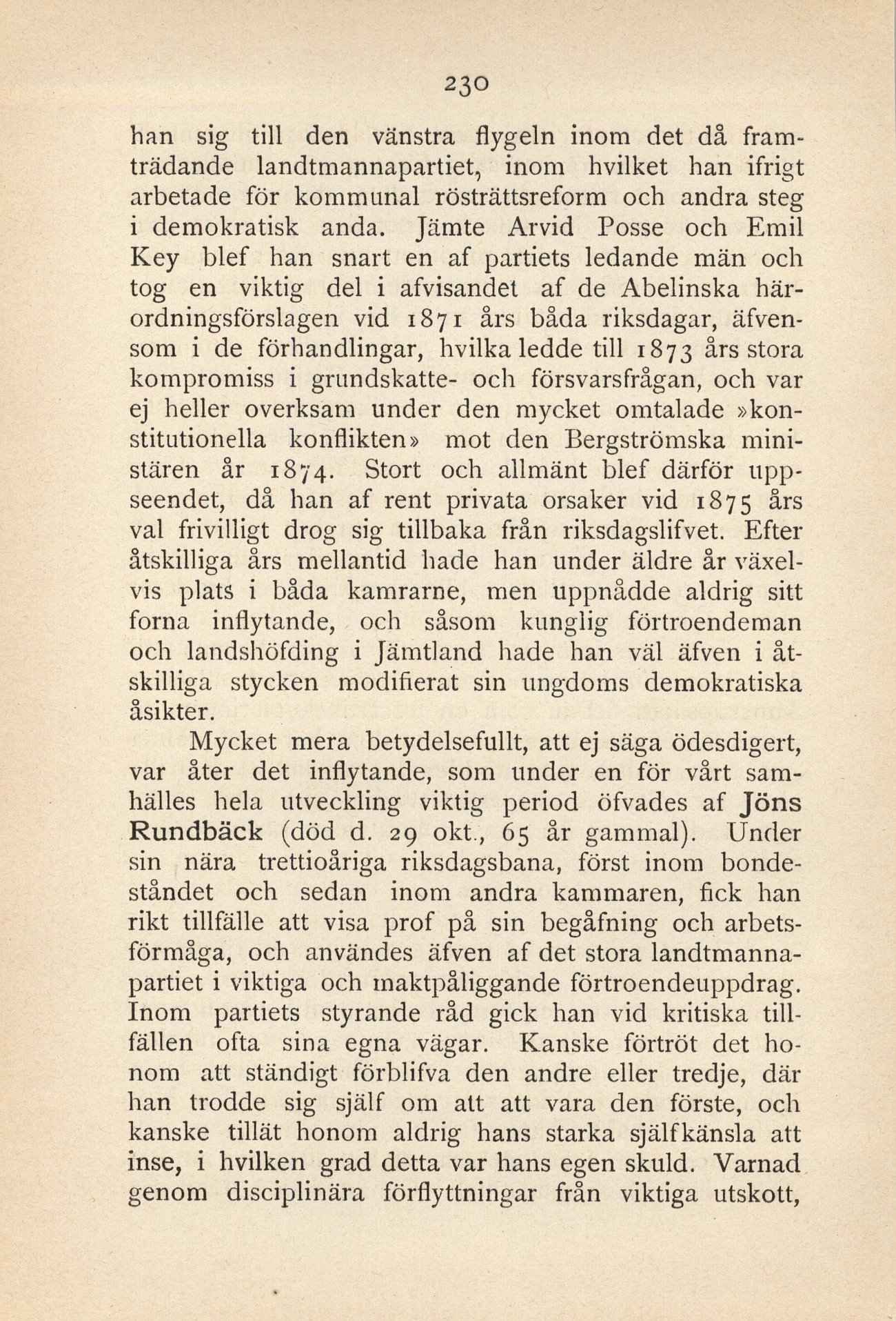 val frivilligt drog sig tillbaka från riksdagslifvet. Efter