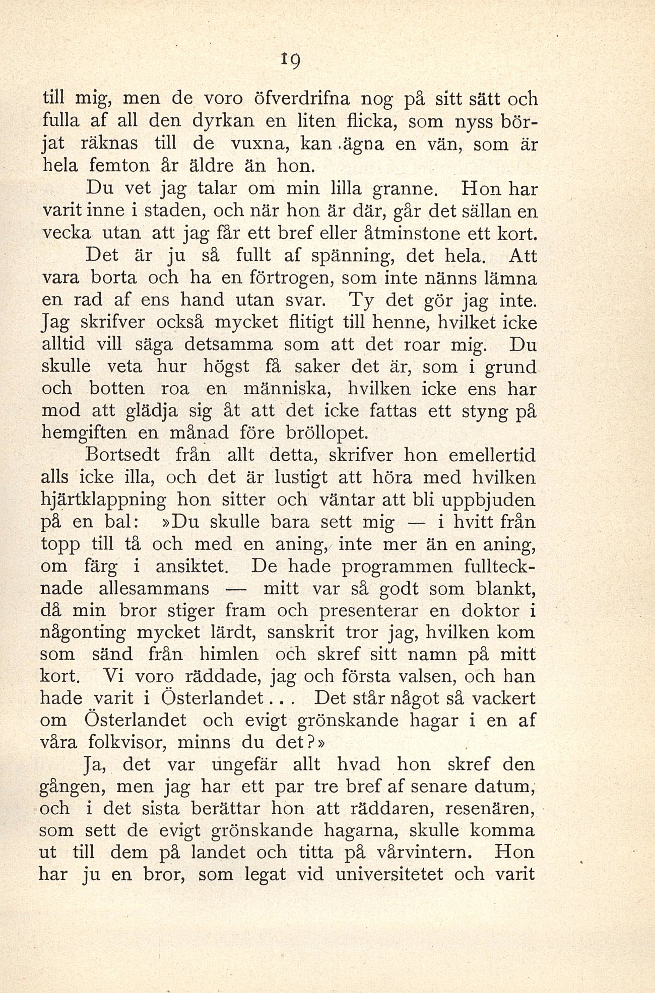 Jag skrifver också mycket flitigt till henne, hvilket icke
