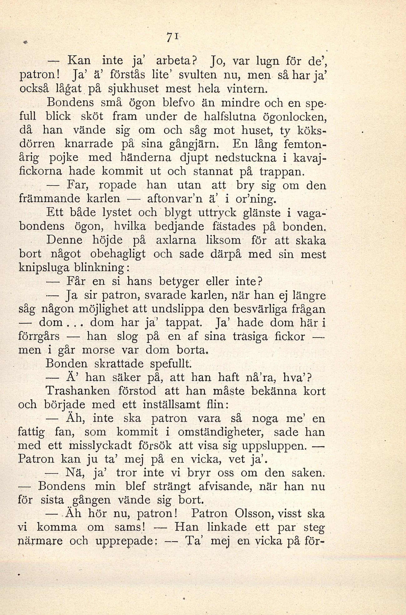 vagabondens ögon, hvilka bedjande fastades på bonden.