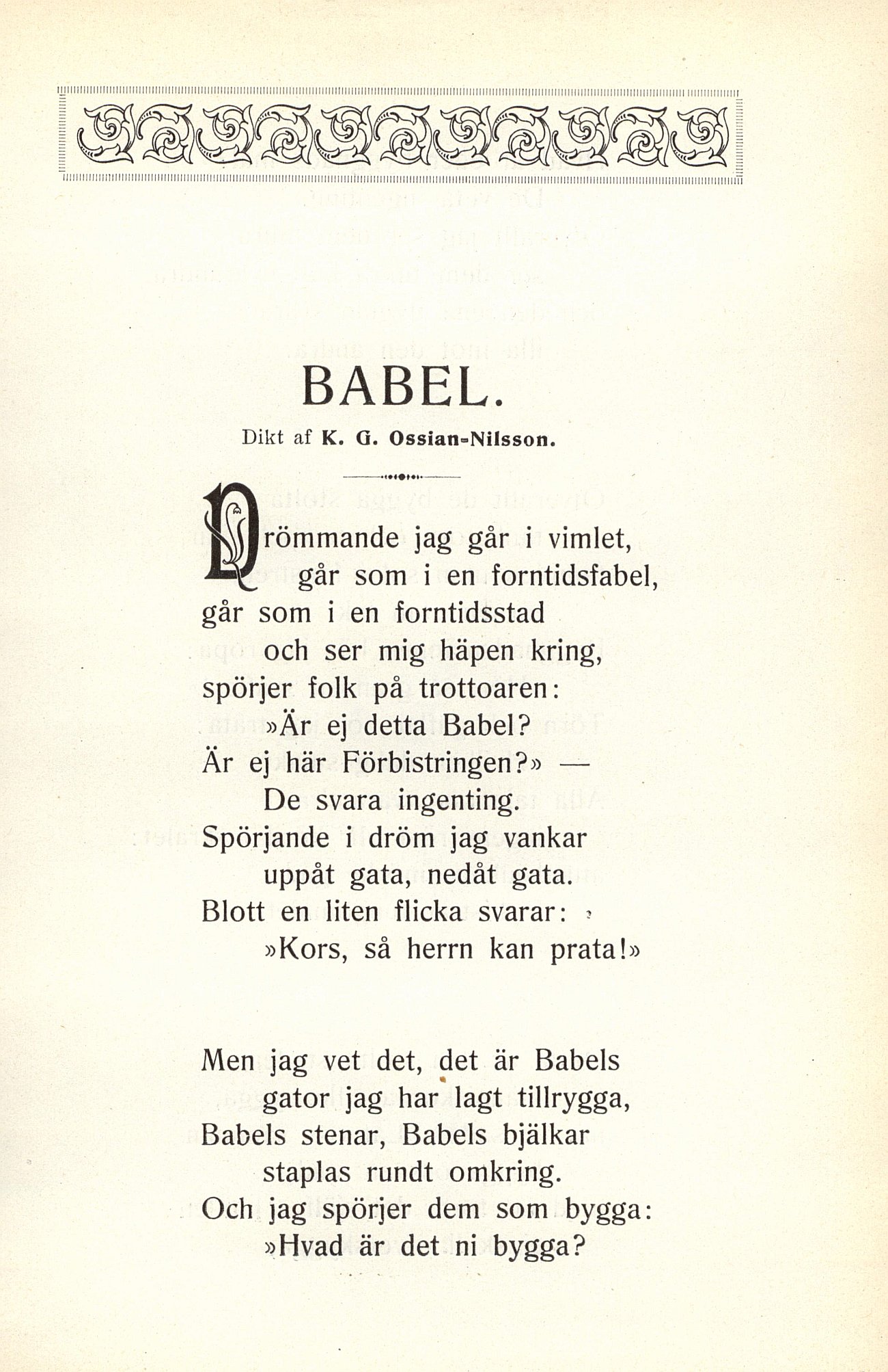 Full resolution (JPEG) - On this page / på denna sida - Babel. Dikt af K. G. Ossian-Nilsson