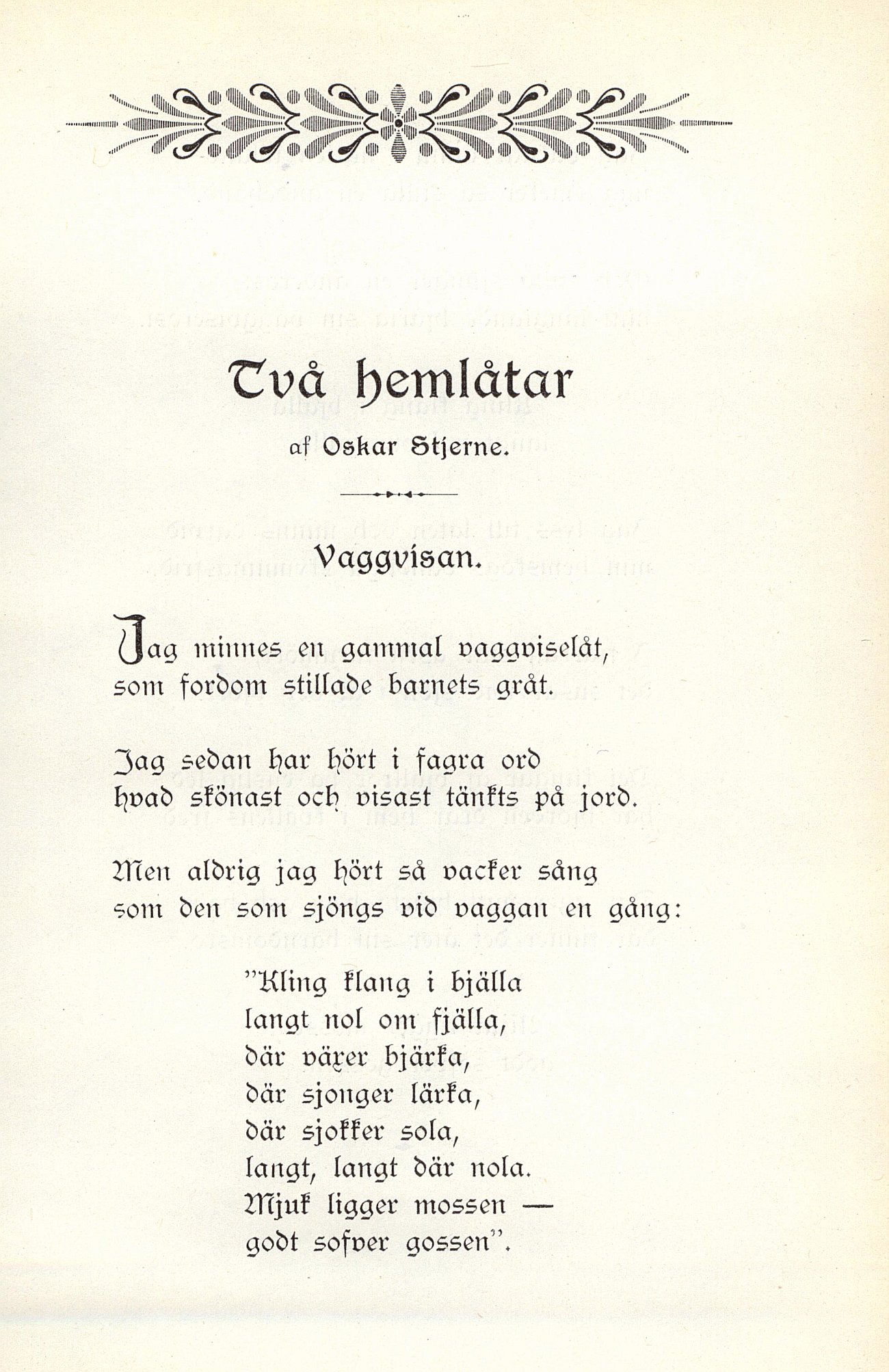 Full resolution (JPEG) - On this page / på denna sida - Två hemlåtar. Dikter af Oskar Stjerne - Vaggvisan