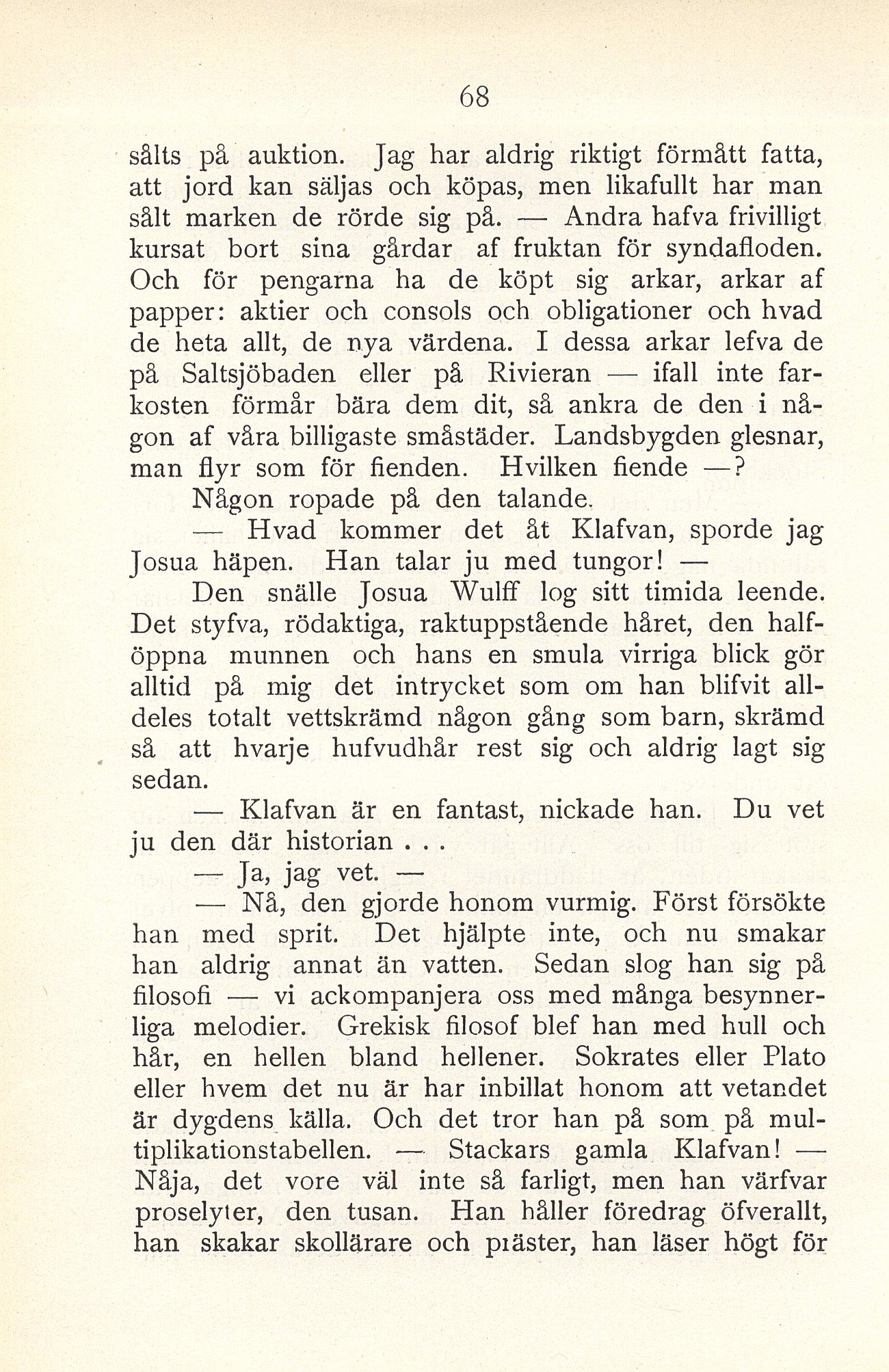 — Klafvan är en fantast, nickade han. Du vet