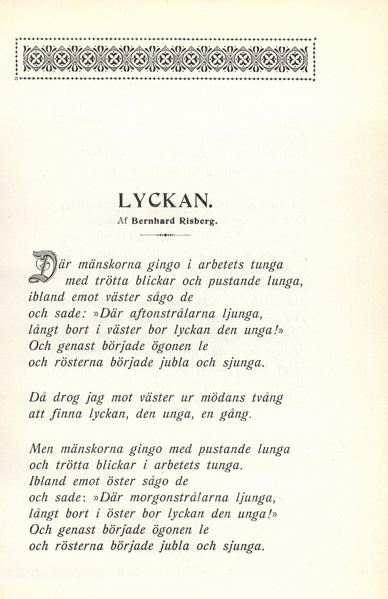 Full resolution (JPEG) - On this page / på denna sida - Lyckan. Dikt af Bernhard Risberg