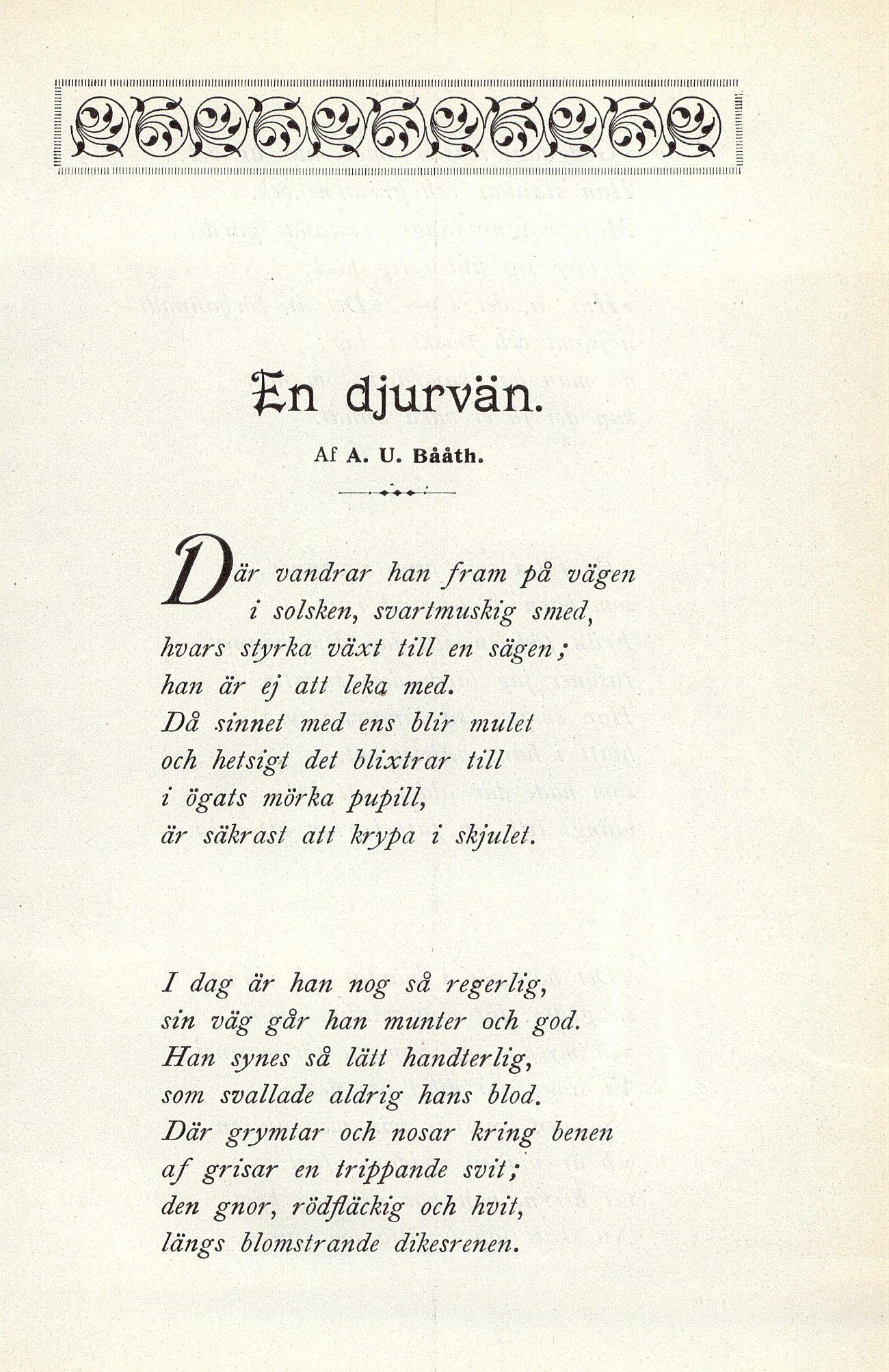 Full resolution (JPEG) - On this page / på denna sida - En djurvän. Dikt af A. U. Bååth