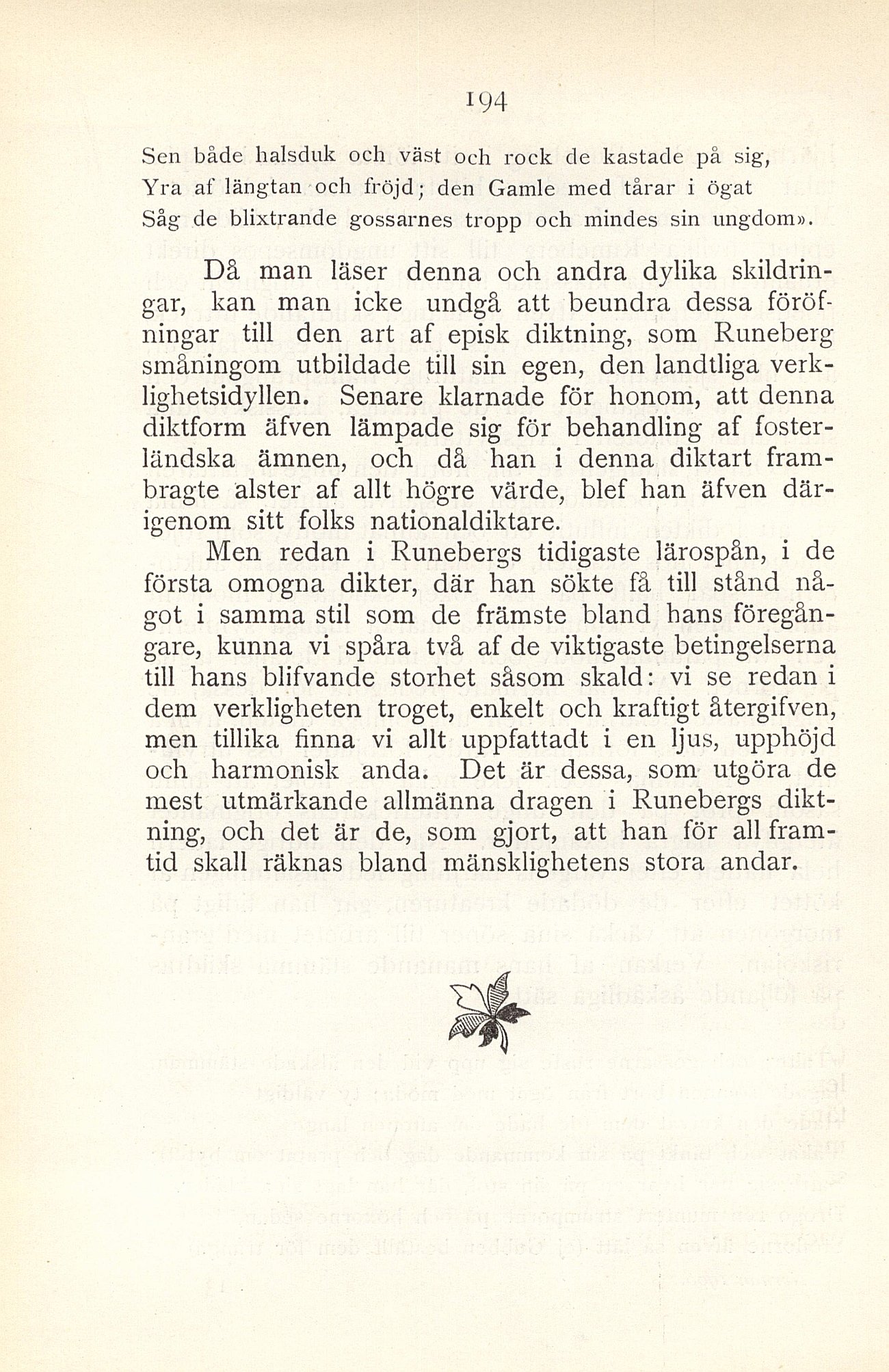 mest utmärkande allmänna dragen i Runebergs
