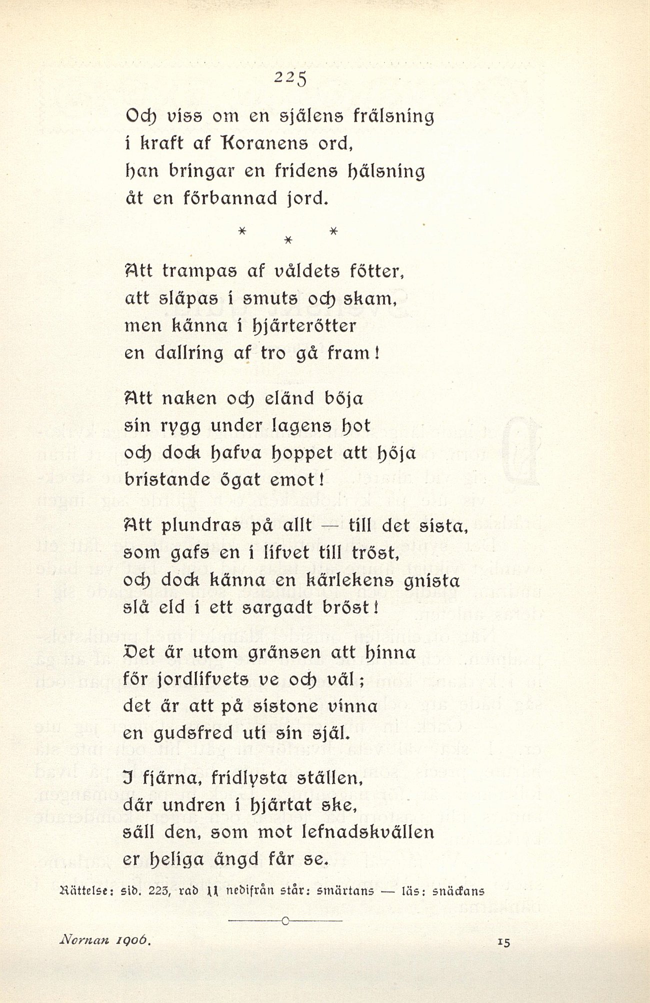 Hättelse: sib. 223, rab U nebifrån står: smärtans — läs: snäcfans