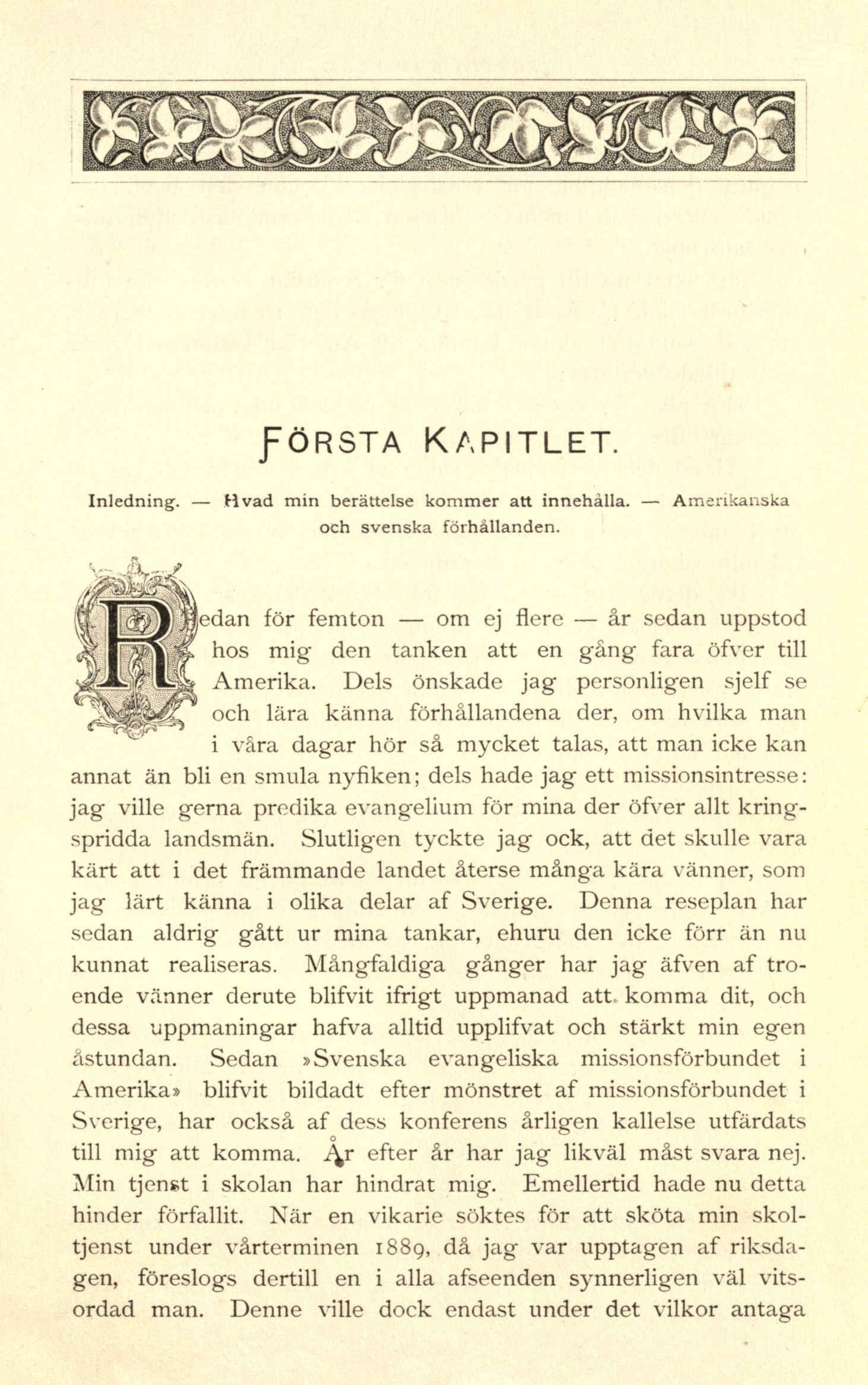 Inledning. — Hvad min berättelse kommer att innehålla. — Amerikanska
