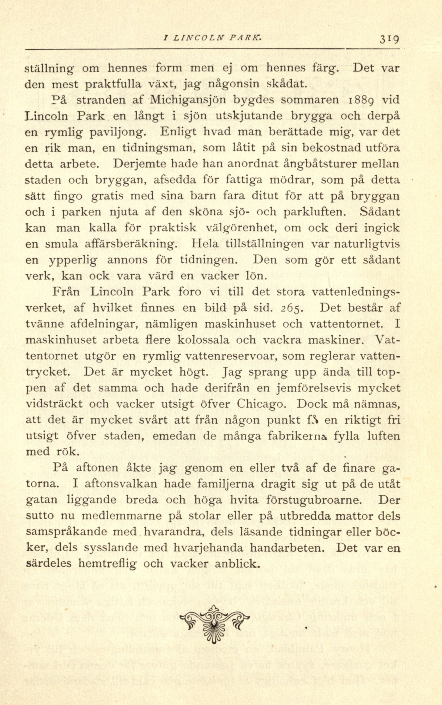 vidsträckt och vacker utsigt öfver Chicago. Dock må nämnas,