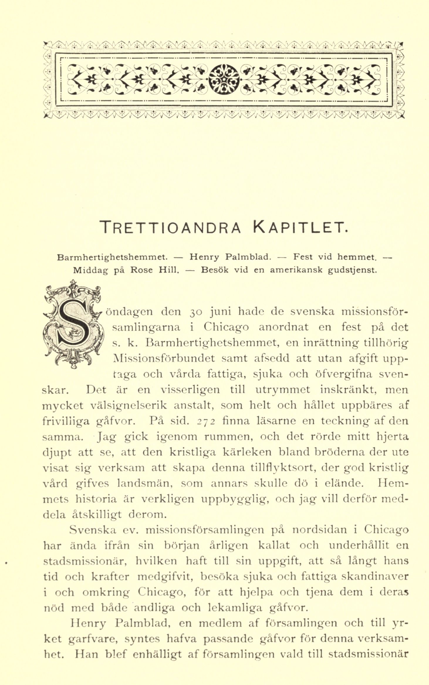Barmhertighetshemmet. — Henry Palmblad. — Fest vid hemmet. —