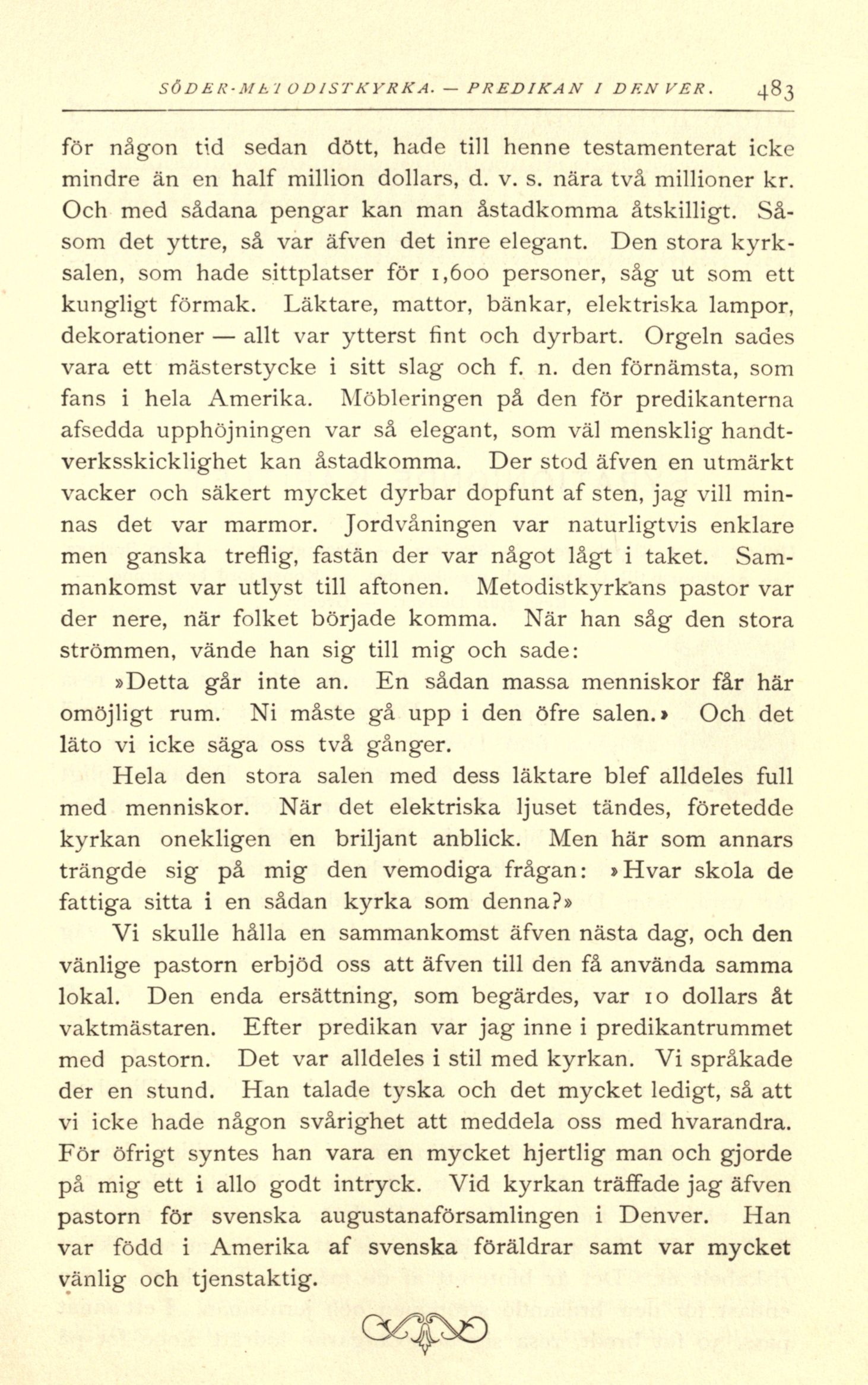 pastorn för svenska augustanaförsamlingen i Denver. Han