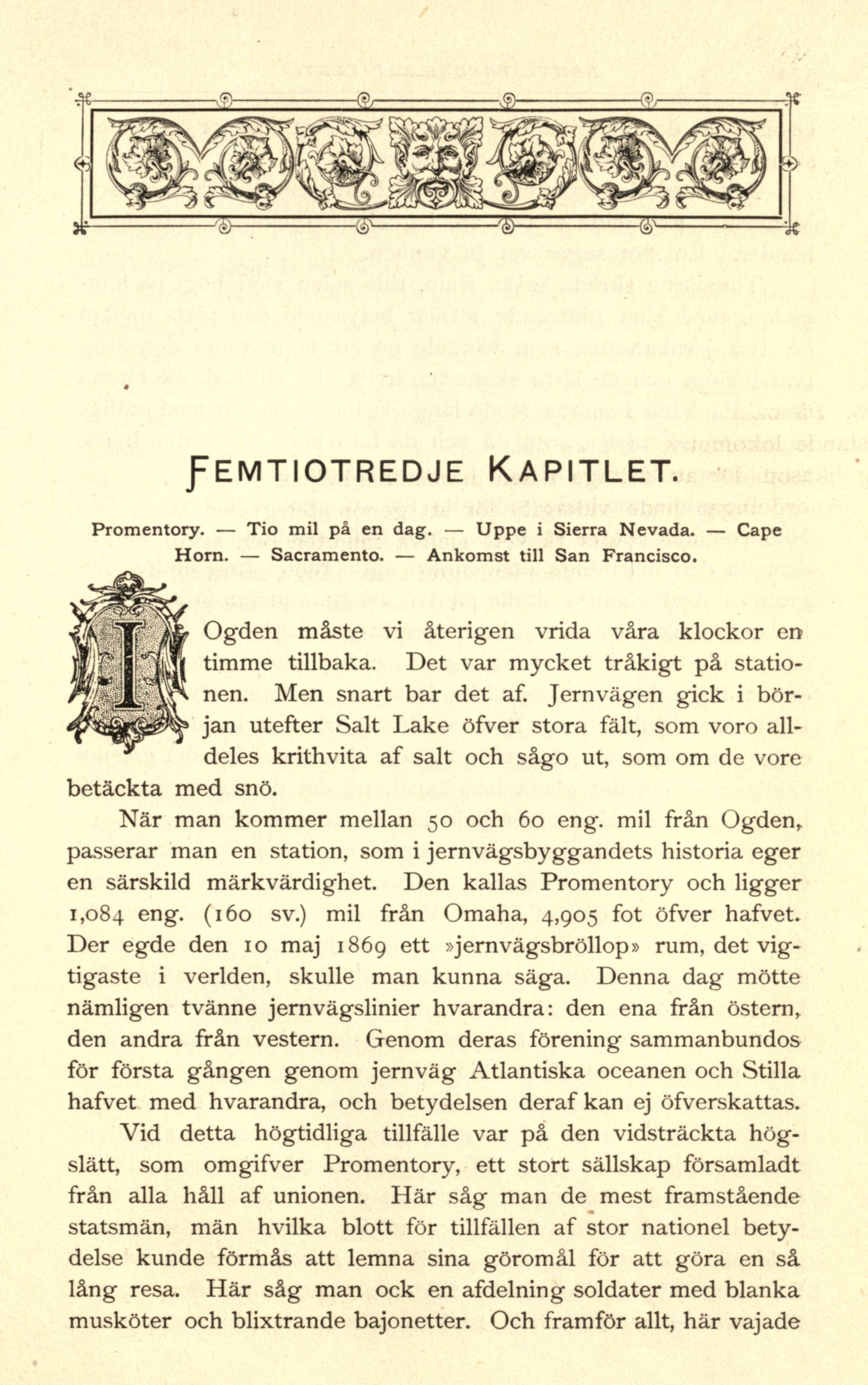 Promentory. — Tio mil på en dag. — Uppe i Sierra Nevada. — Cape