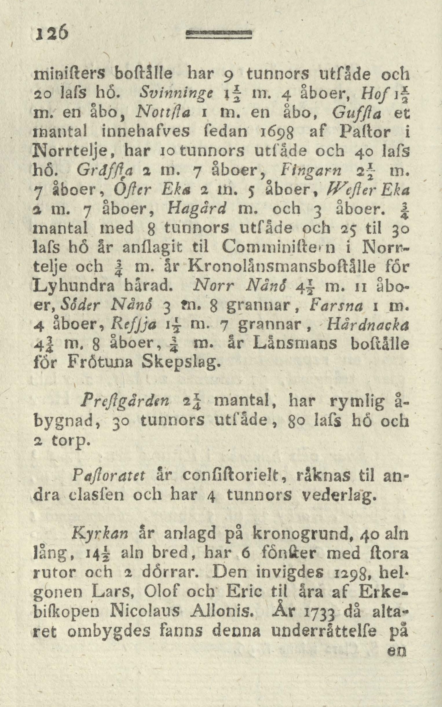 mantal innehafves sedan 1698 af Pastor i