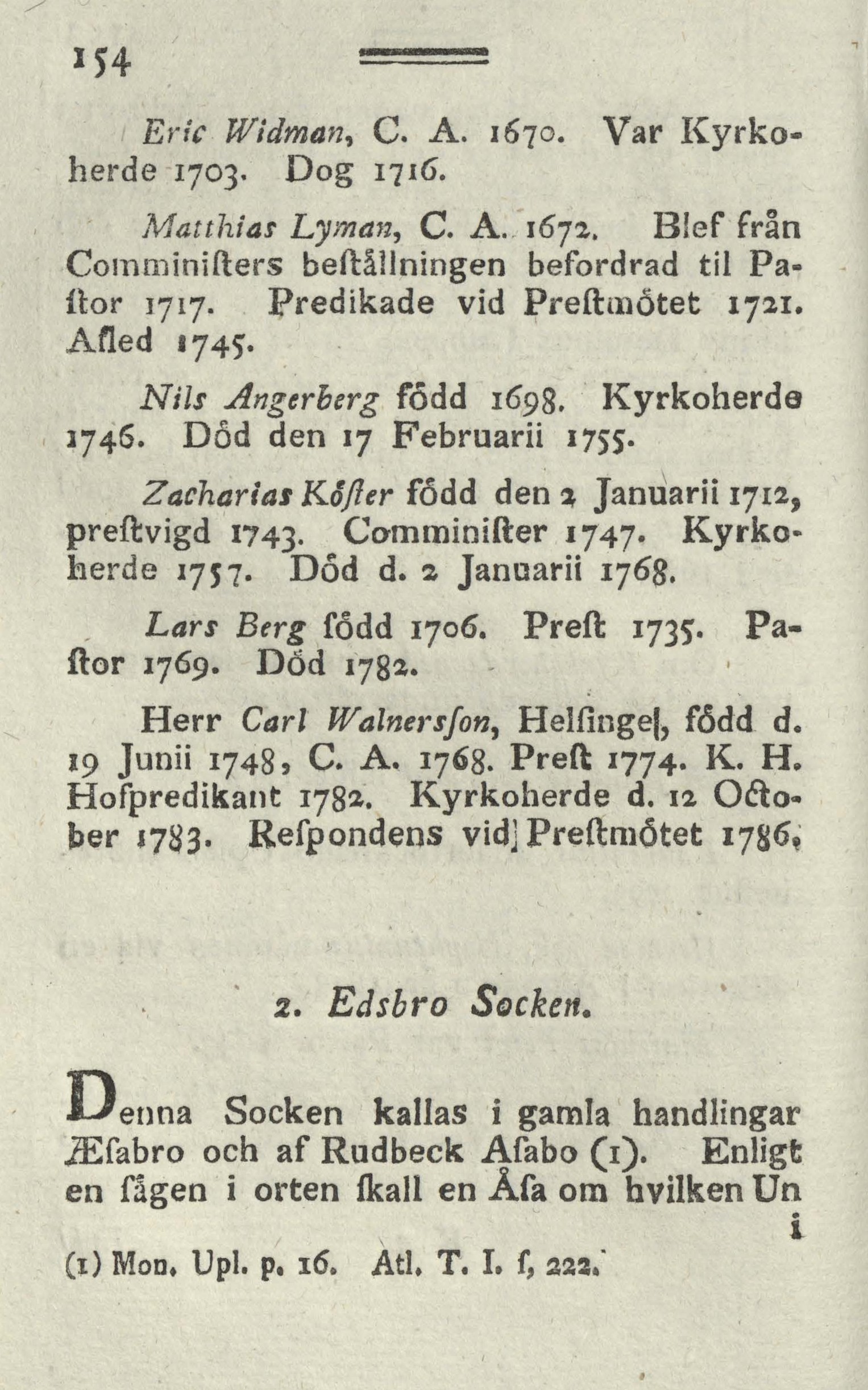 Lars Berg södd 1706. Prest 1735.