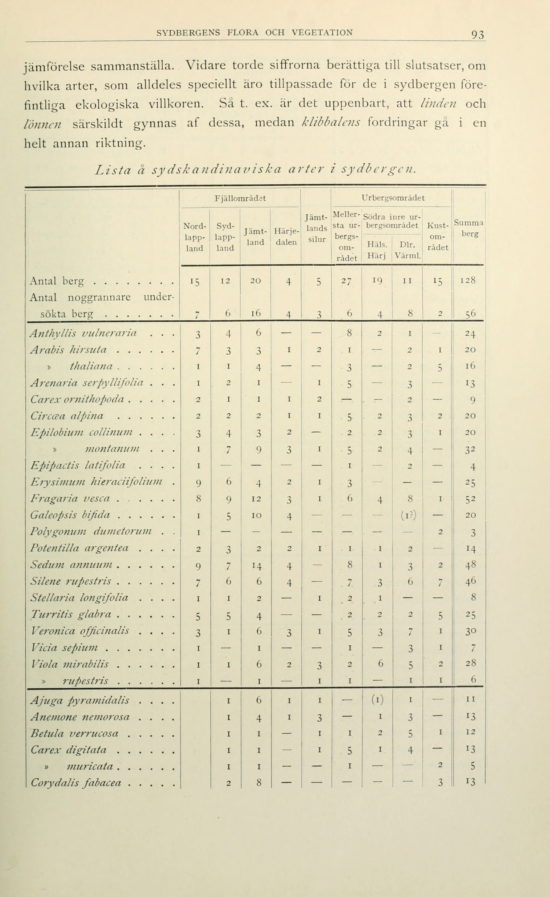 hvilka arter, som alldeles speciellt äro tillpassade för de i sydbergen