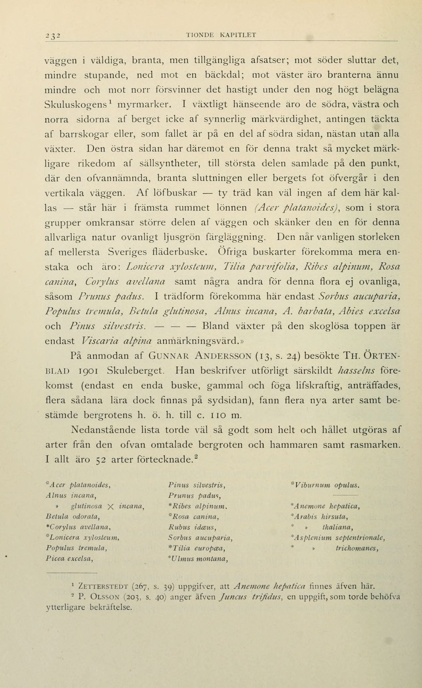 Örten-blad 1901 Skuleberget. Han beskrifver utförligt särskildt hasselns