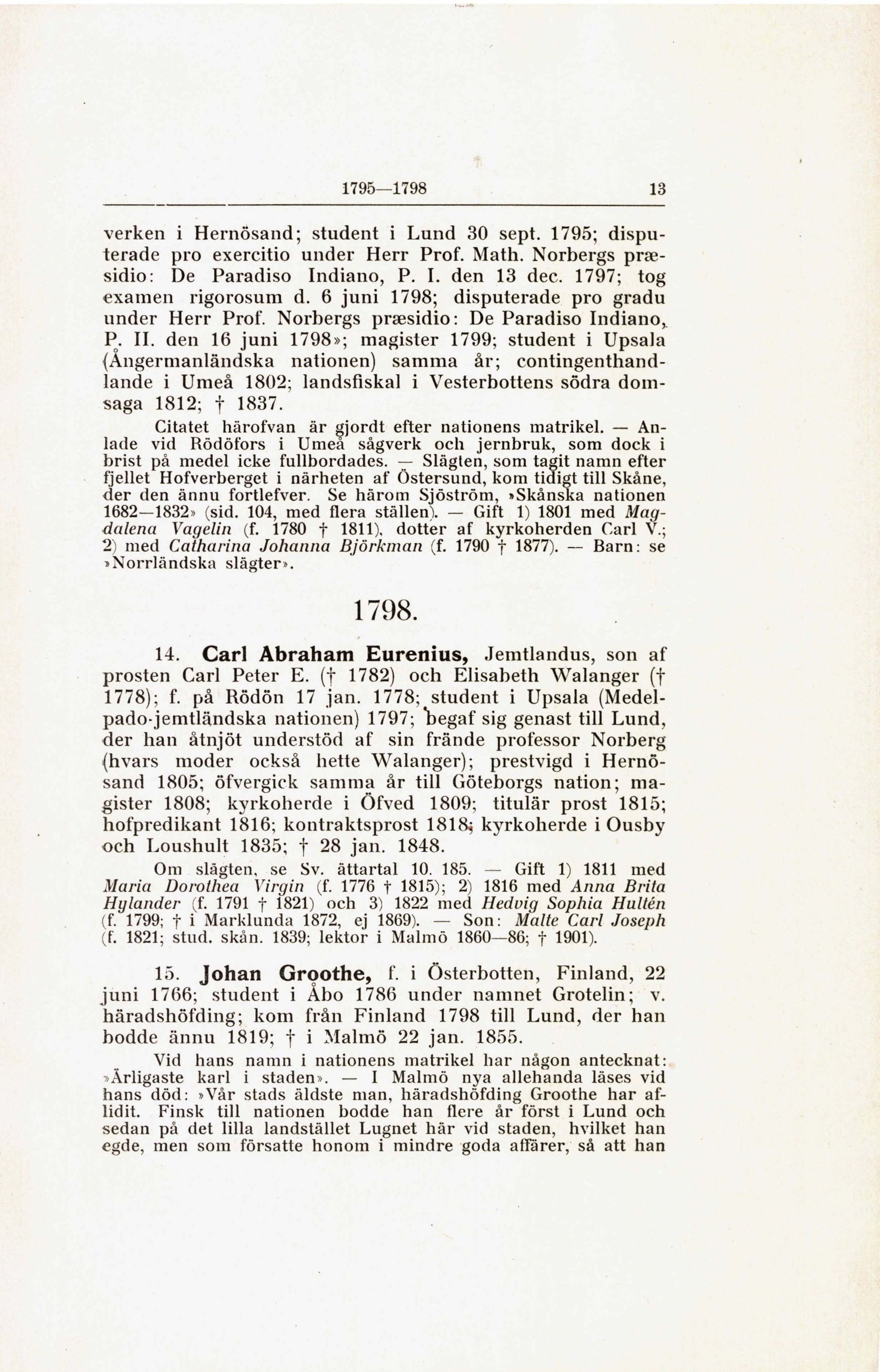 (Medel-pado-jemtländska nationen) 1797; "begaf sig genast till Lund,