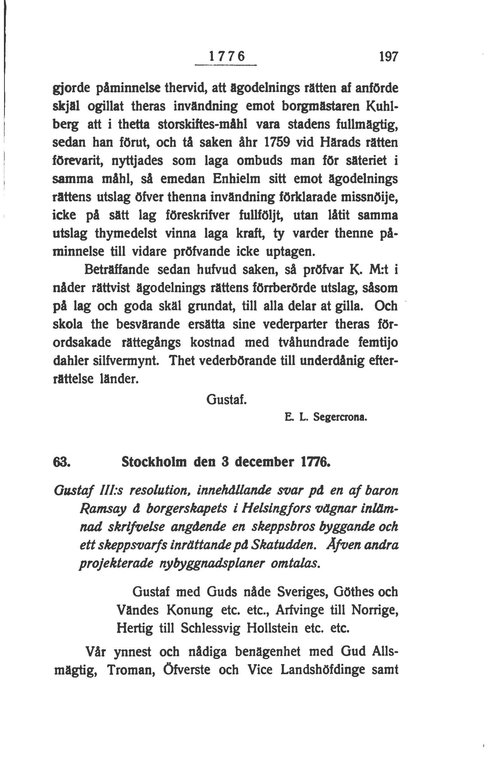 Gustaf III:s resolution, innehållande svar pä en af baron