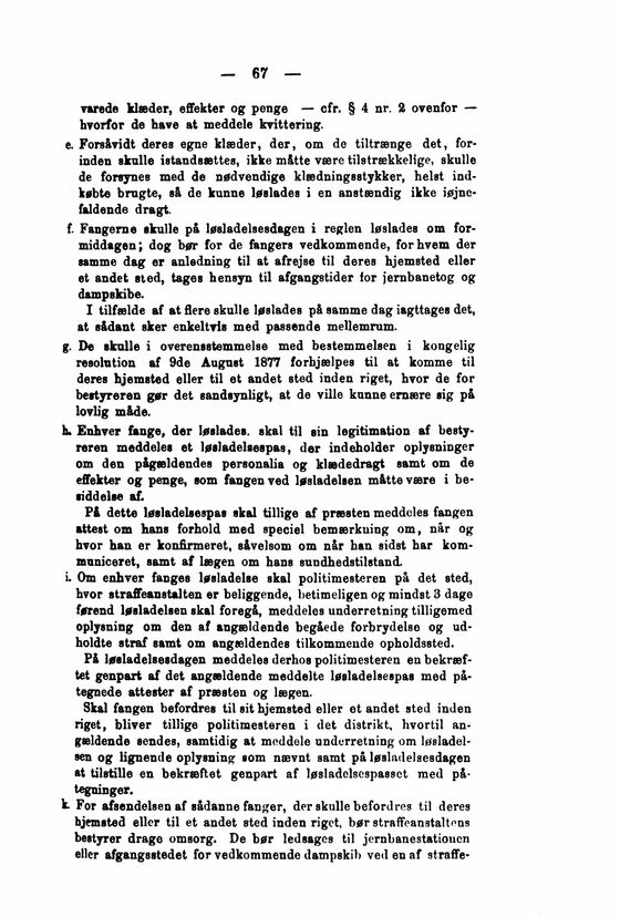 f. Fangerne skulle på løsladelsesdagen i reglen løslades om