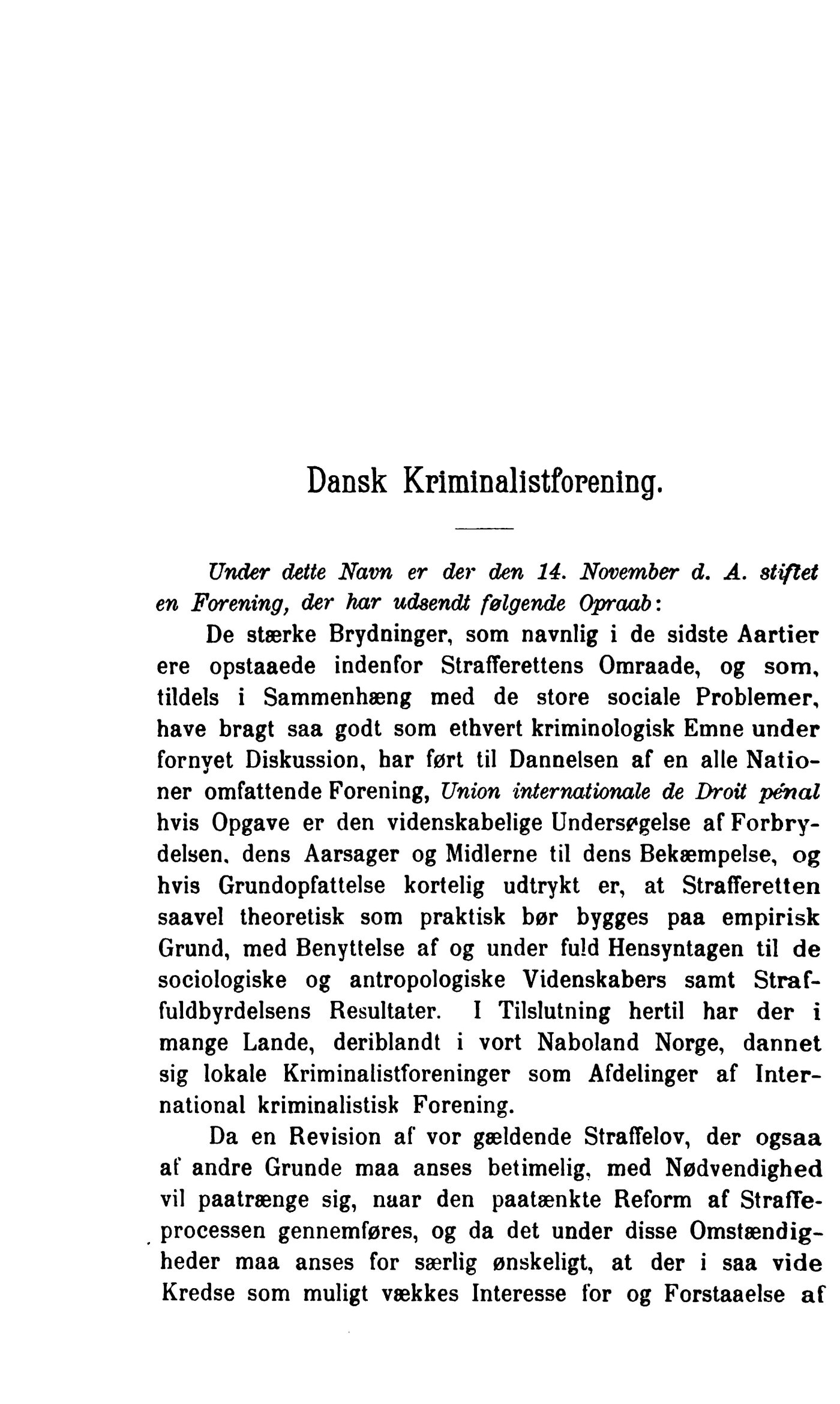Da en Revision af vor gældende Straffelov, der ogsaa