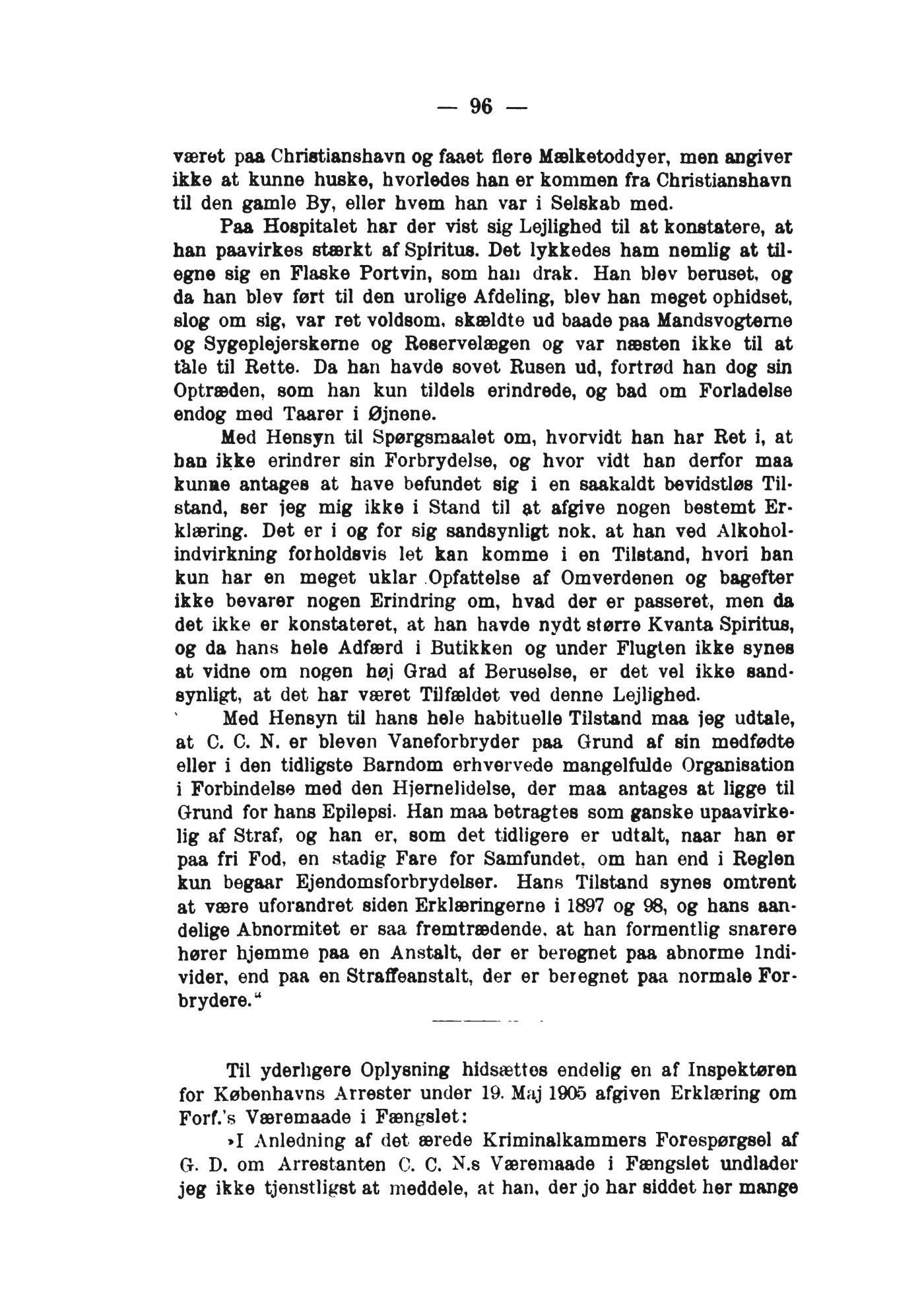 for Københavns Arrester under 19. Maj 1905 afgiven Erklæring om