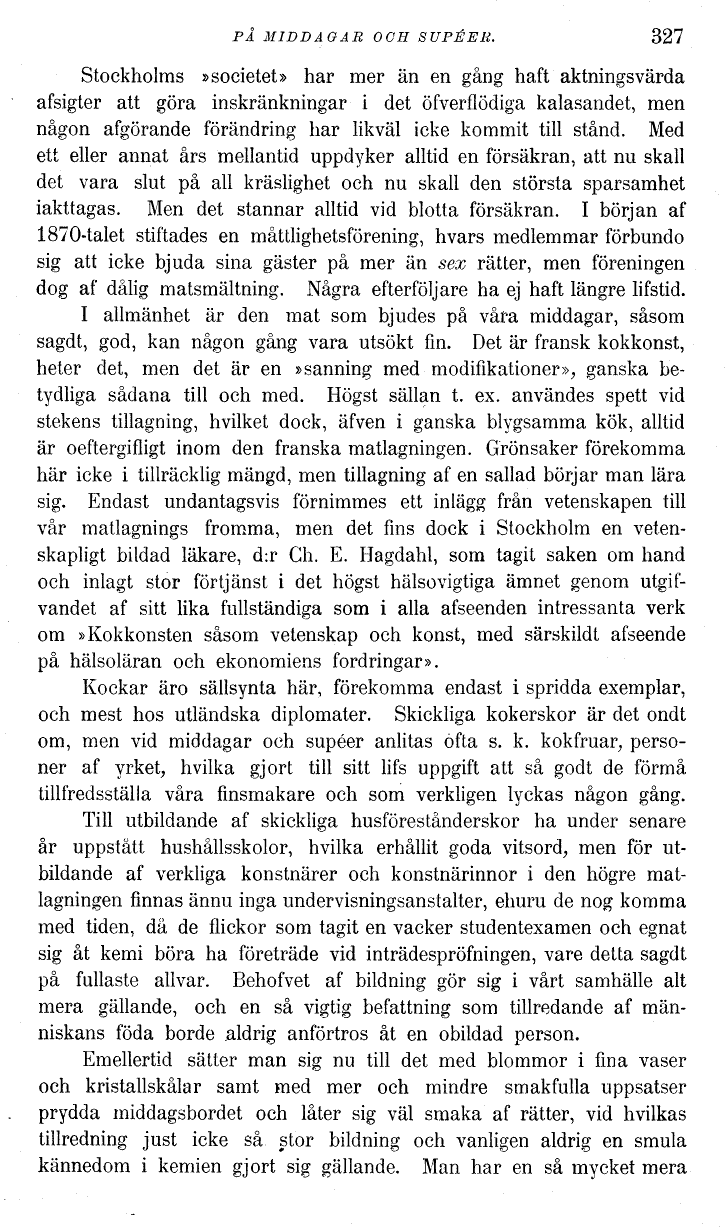om, men vid middagar och supéer anlitas ofta s. k. kokfruar,