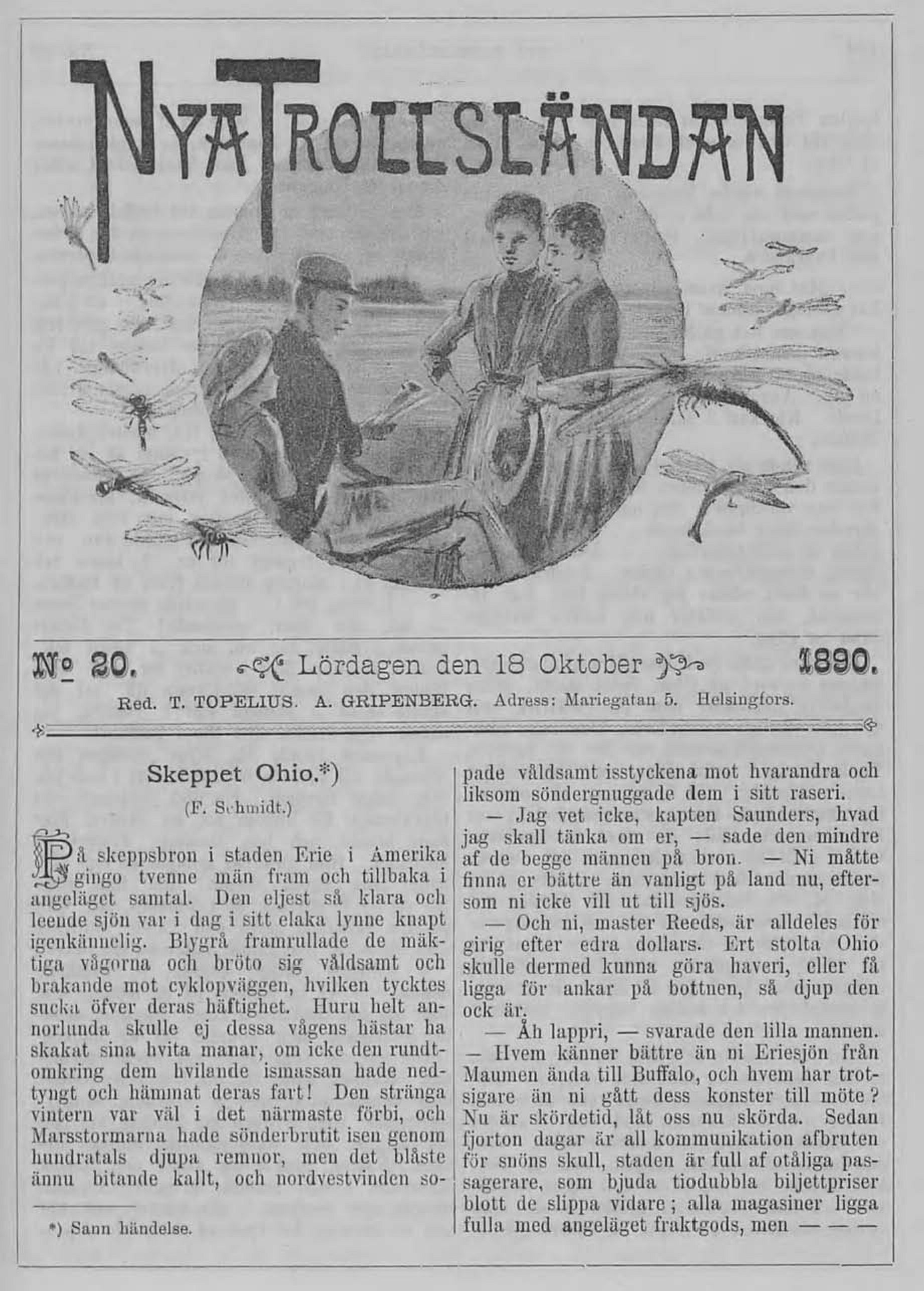 Red. T. TOPELIUS. A. GRIPENBERG. Adress: Mariegatau 5. Helsingfors.