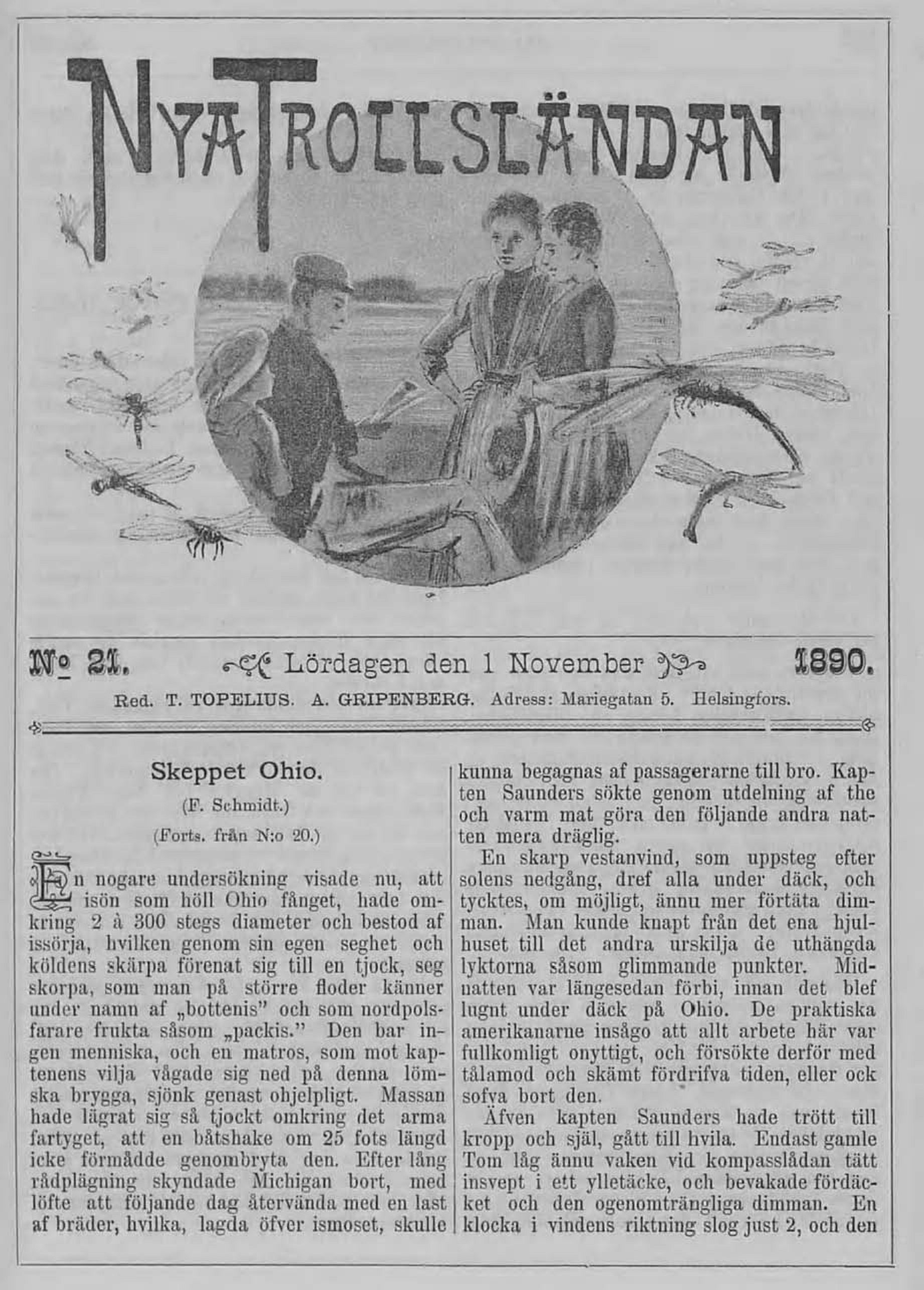 Red. T. TOPELIUS. A. GRIPENBERG. Adress: Mariegatan 5. Helsingfors.