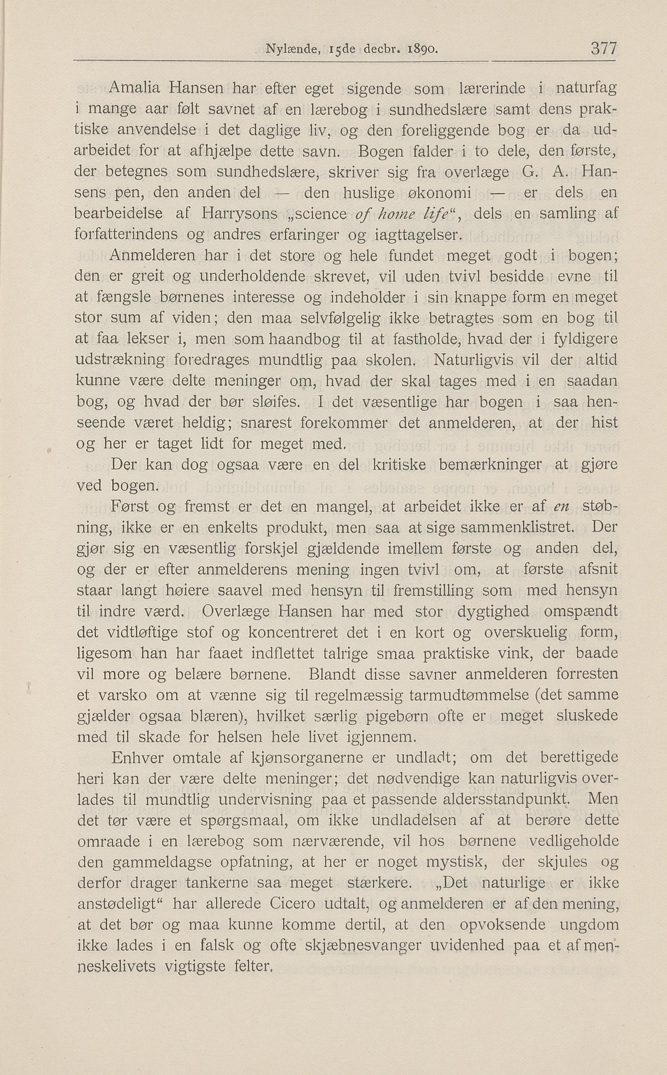 Full resolution (JPEG) - On this page / på denna sida - No. 24. 15de december - Amalia Hansen: Lærebog i sundhedslære og huslig økonomi (anmeldt af E. B.)