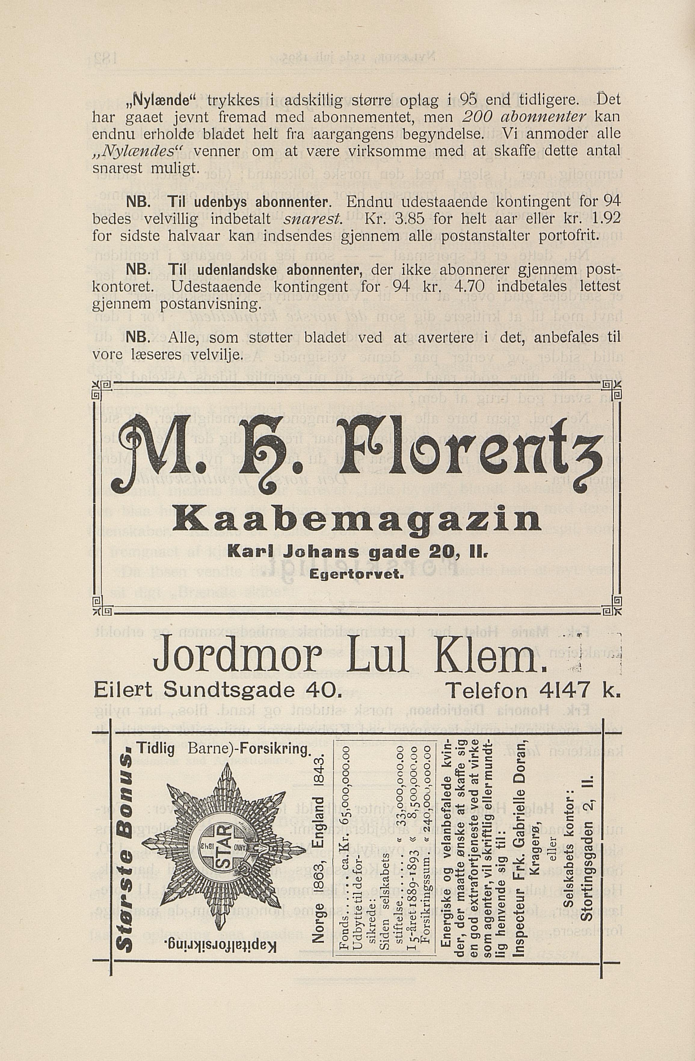bedes velvillig indbetalt snarest. Kr. 3.85 for helt aar eller kr. 1.92
