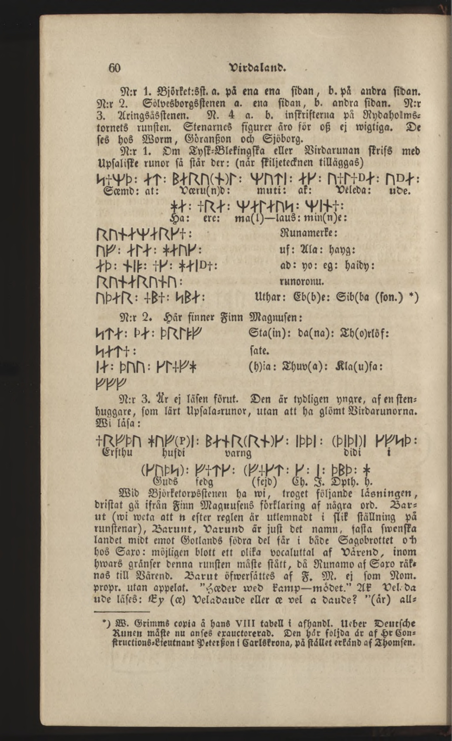 Full resolution (JPEG) - On this page / på denna sida - 1 Kap. Har här funnits ett Virdaland och Virdafolk? - 7 §. Virdafolk eller Småländningar - c) Virdarunan eller Virdarnes skriftecken - (2) Runurkunder i Virdariket