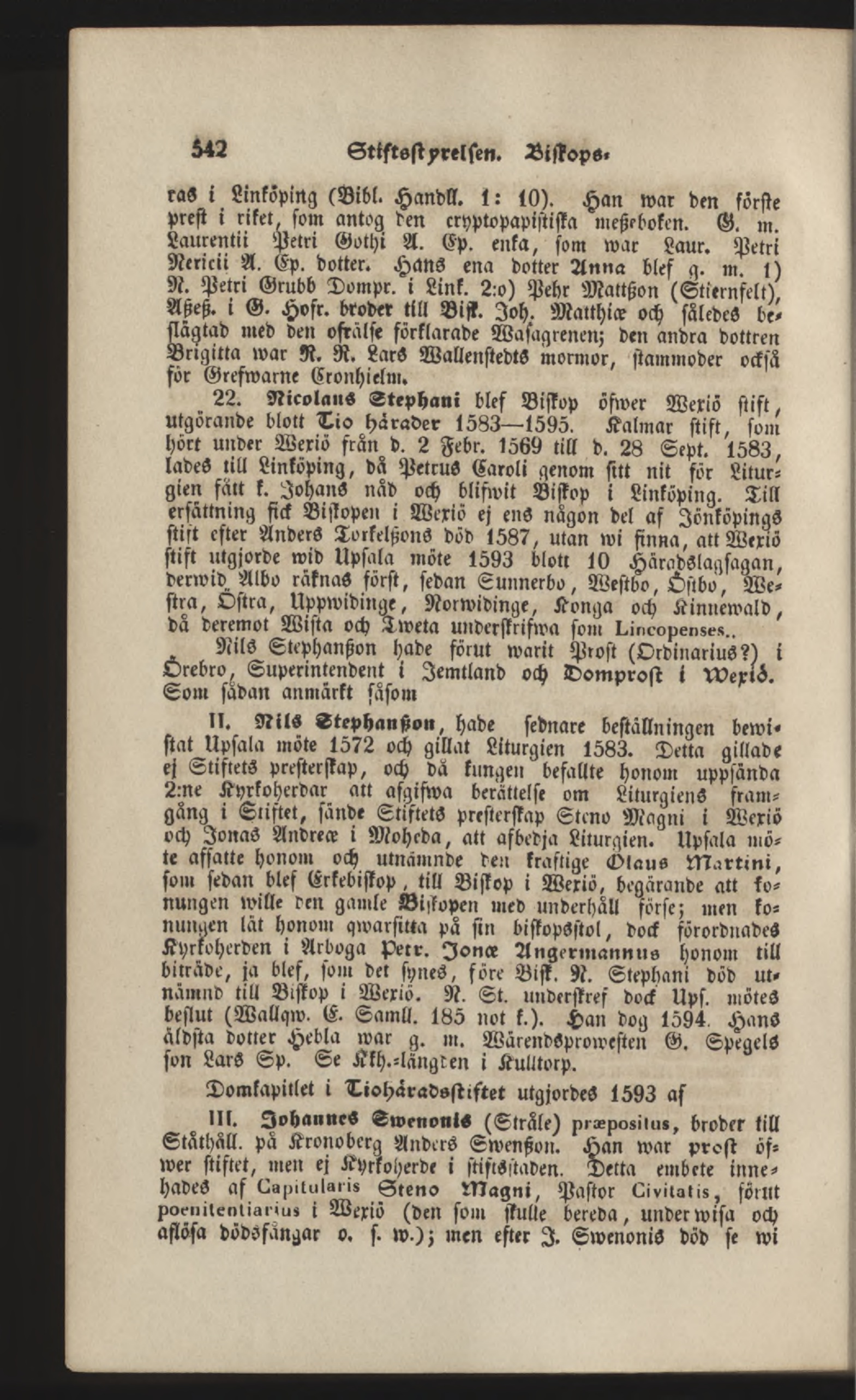 22. Nicolaus Stephani blef Biskop öswer Weriö stift ,